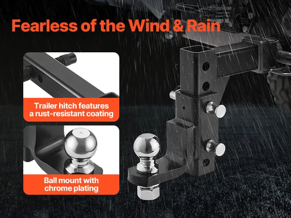 The accessories of our trailer hitch ball mount are built to withstand harsh weather conditions. The powder-coated layer and corrosion-resistant materials ensure that the trailer hitch remains in good condition even in damp, rainy environments!