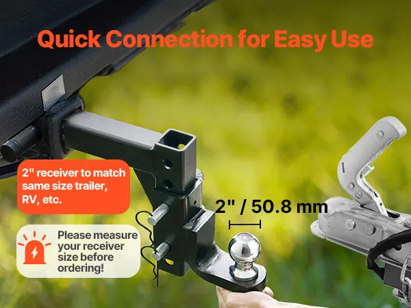 Compatible with Various Vehicle Models: Our tow hitch uses a standard 2 in/50 mm receiver, which greatly matches trailers, boats, RVs, livestock trailers, recreational vehicle trailers, off-road vehicles, ATVs, motorcycles, rear bumpers, agricultural machinery, and dual-receiver extenders of the same size. Please confirm that the required size compatibility before purchasing.