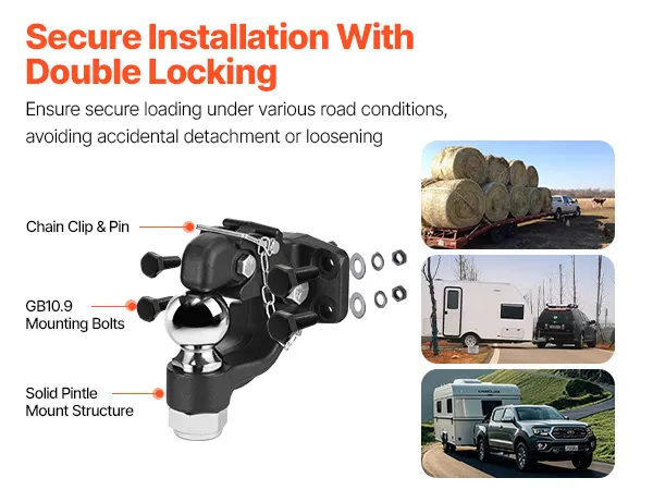 De robuuste constructie en het vergrendelingsmechanisme van de trekhaak zorgen voor een sterke en betrouwbare verbinding van de trekhaak en minimaliseren effectief het risico op ongevallen.