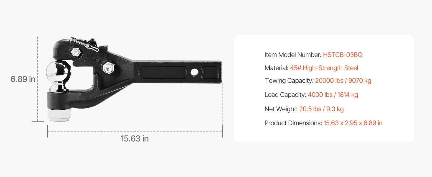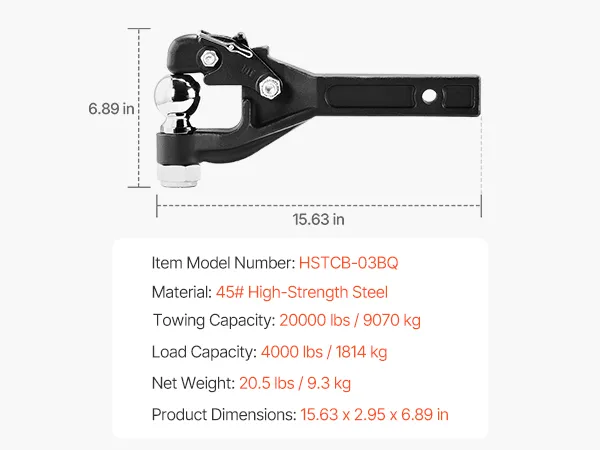 With supporting towing weights of up to 20,000 lbs, our pintle hook hitch is specifically designed for heavy loads with standardized dimensions to meet various trailer needs.