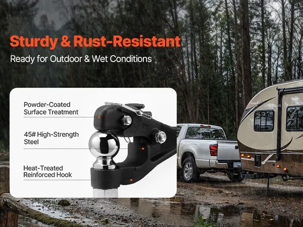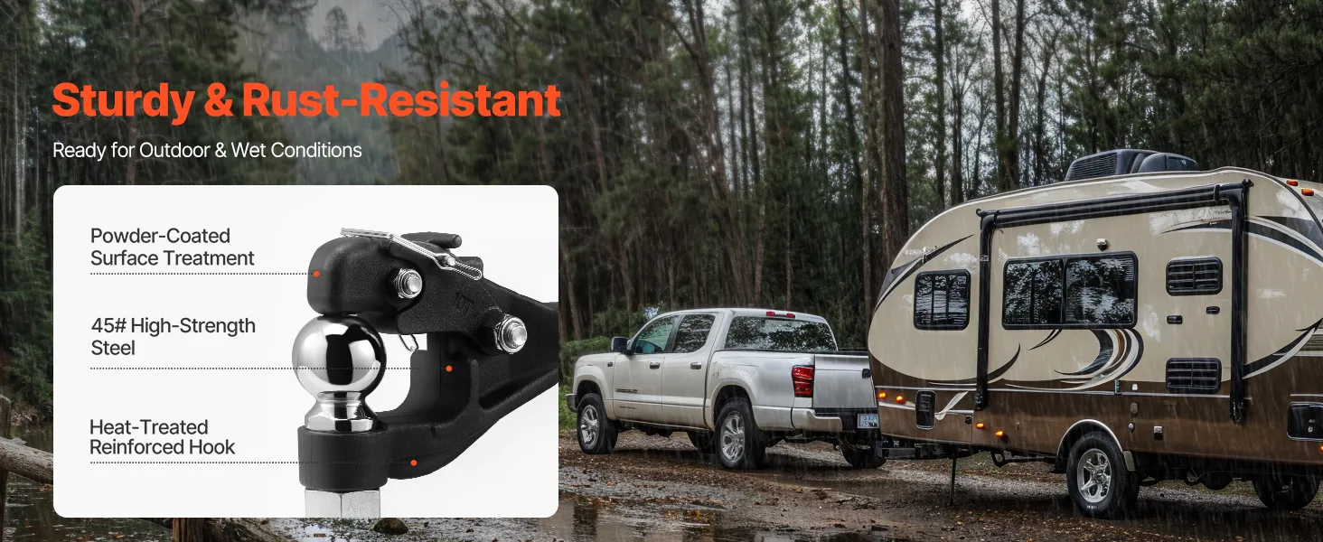 Premium Durability: The pintle hook hitch is constructed from high-quality steel with a solid one-piece design and features a powder-coated surface that enhances rust and wear resistance. Additionally, the heat-treated hook further increases its lifespan.