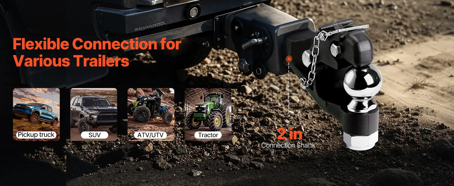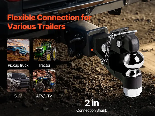 Wide Compatibility: Equipped with an adapter, our pintle hook is compatible with 2" receivers. When used with lunette rings, receiver rings, and ball couplers, it easily adapts to various towing equipment, including trucks, tractors, SUVs, and ATVs.