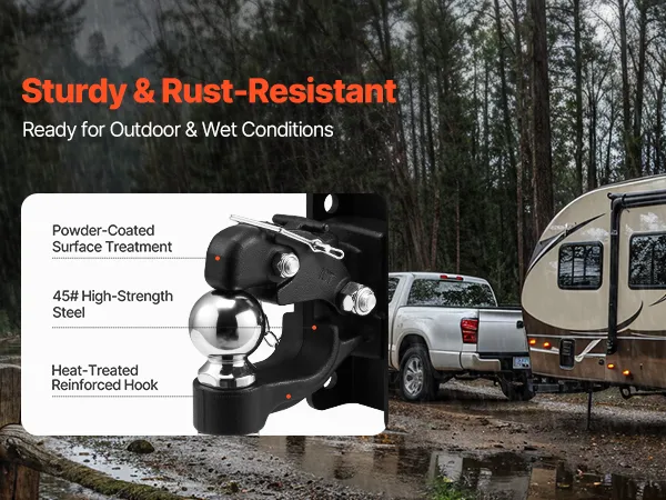 • Premium Durability: The pintle hook hitch is constructed from high-quality steel with a solid one-piece design and features a powder-coated surface that enhances rust and wear resistance. Additionally, the heat-treated hook further increases its lifespan.