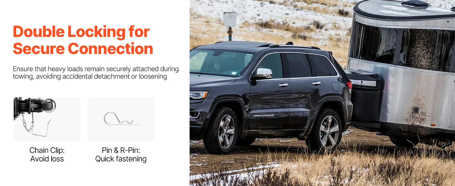 • Security Locking: After pulling down the latch, secure the pintle hook trailer hitch with a pin or R-pin to minimize the risk of accidental detachment or loosening during use. This is especially beneficial for travel on bumpy roads, providing extra security.