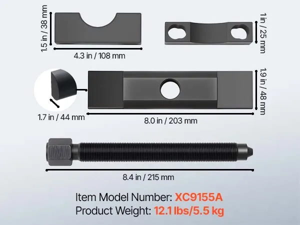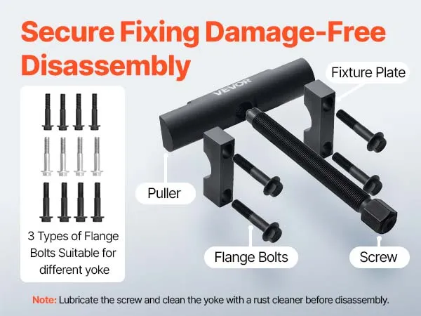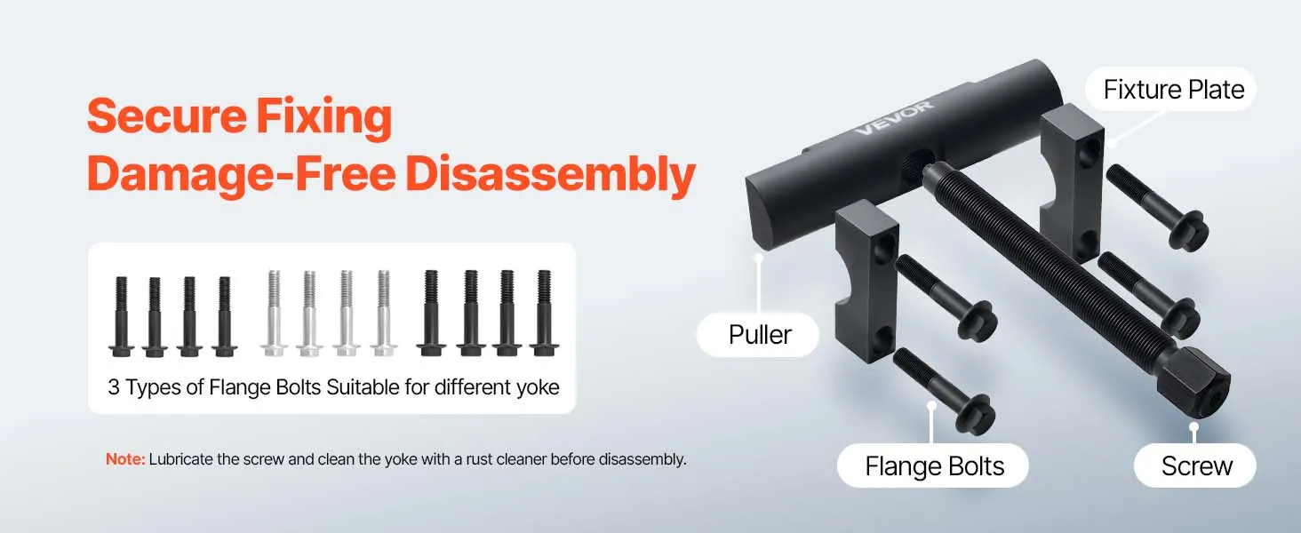 Inclusief drie boutopties: De gaffelverwijderaar wordt geleverd met drie flensboutmaten: 3/8-24", M12 x 1,25" en 1/2-20". Hij kan worden bevestigd aan gaffels van verschillende maten, waardoor het eenvoudiger is om de lagers van de gaffels te scheiden.