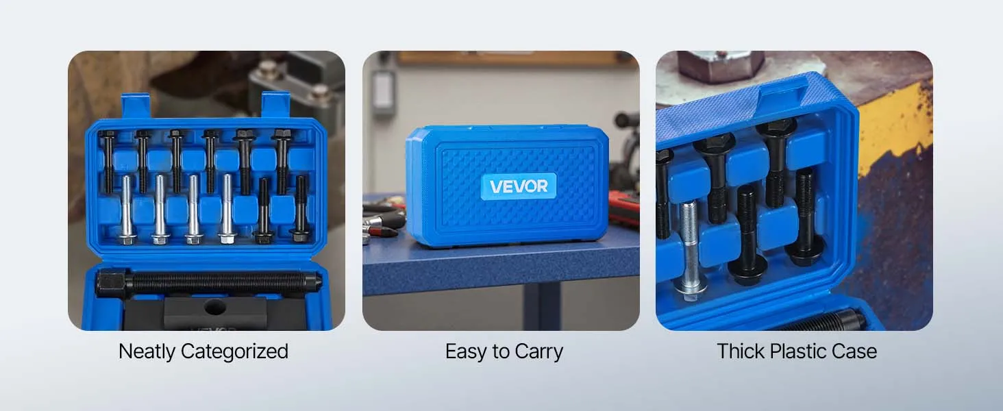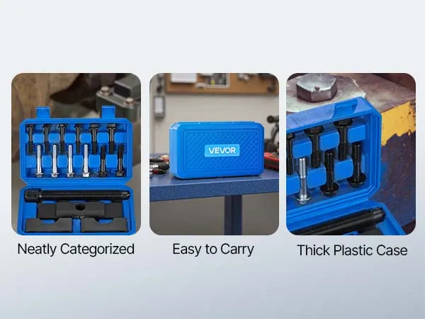 Duurzaam: De robuuste set voor het verwijderen van jukken is gemaakt van hoogwaardig staal voor een uitstekende duurzaamheid. Hij is bestand tegen zware toepassingen en langdurig gebruik zonder te breken, waardoor het veelvoorkomende probleem van gereedschapsfalen tijdens reparaties onder hoge druk wordt opgelost.