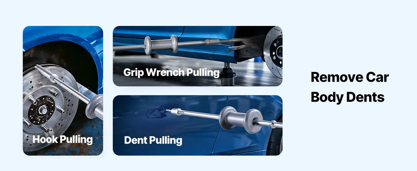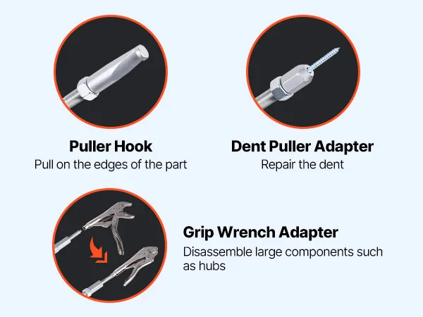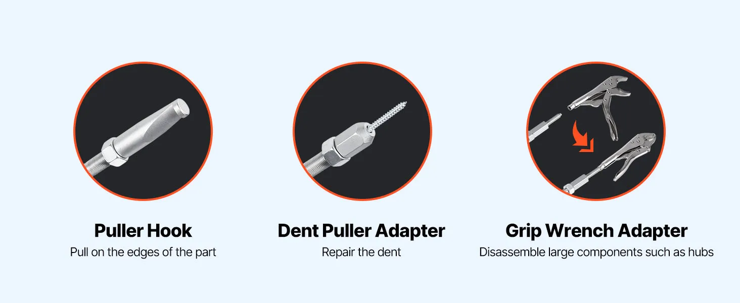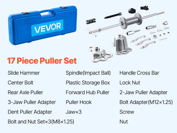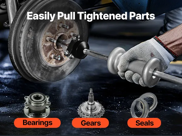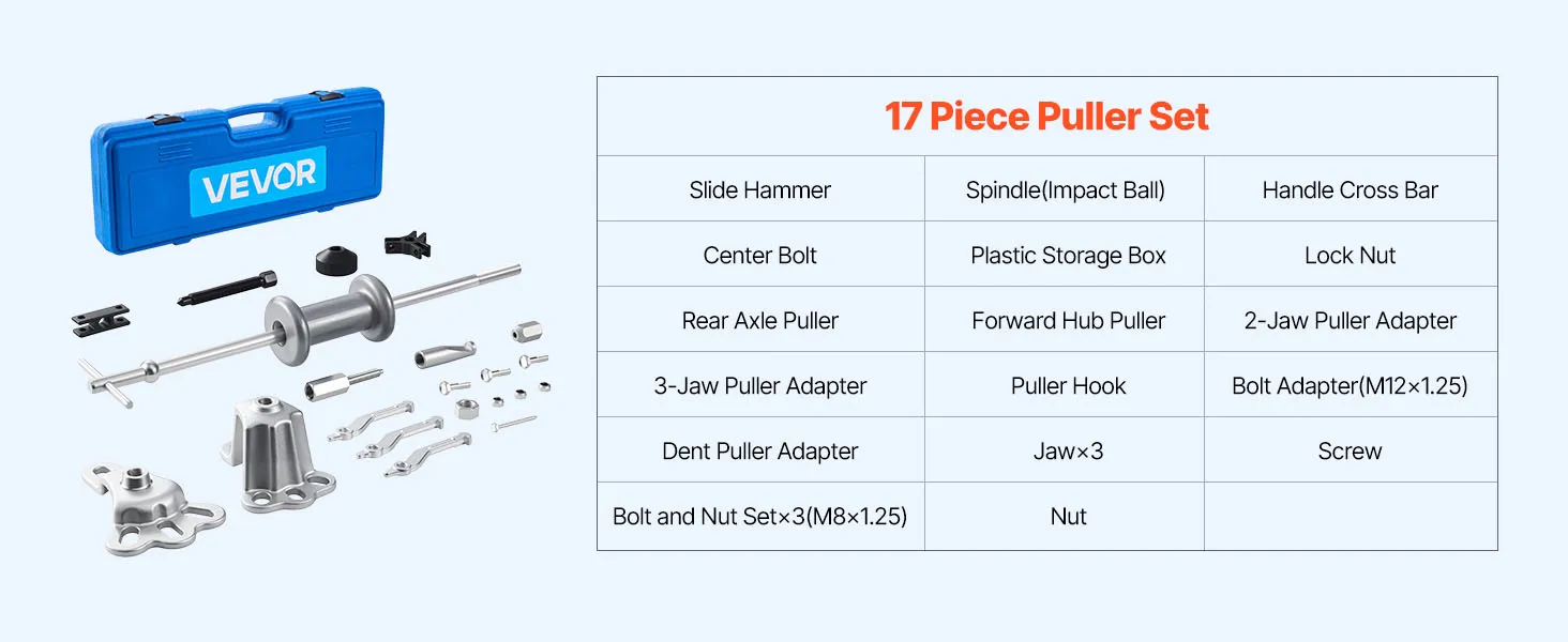 9-in-1 multifunctionele set: onze glijhamer-trekkerset bevat een glijhamer van 4,3 lbs voor verschillende trektaken, zoals flensachterassen, de meeste voorwielaandrijvingsnaven, deuken trekken en perspassingonderdelen zoals lagers, bussen, tandwielen en katrollen