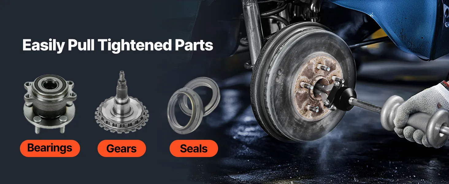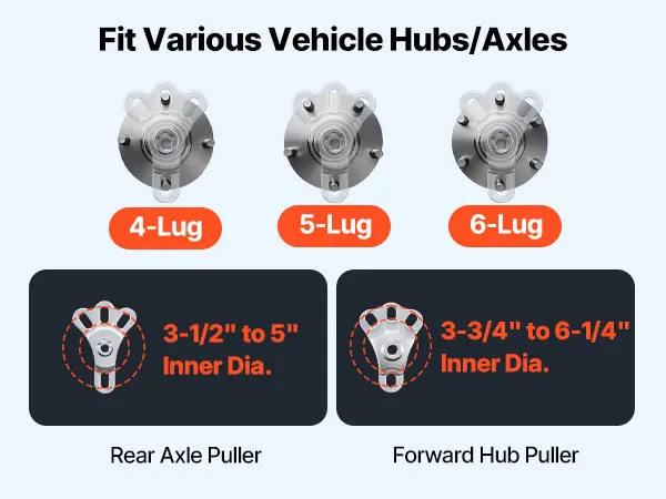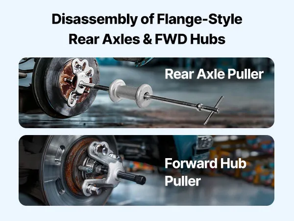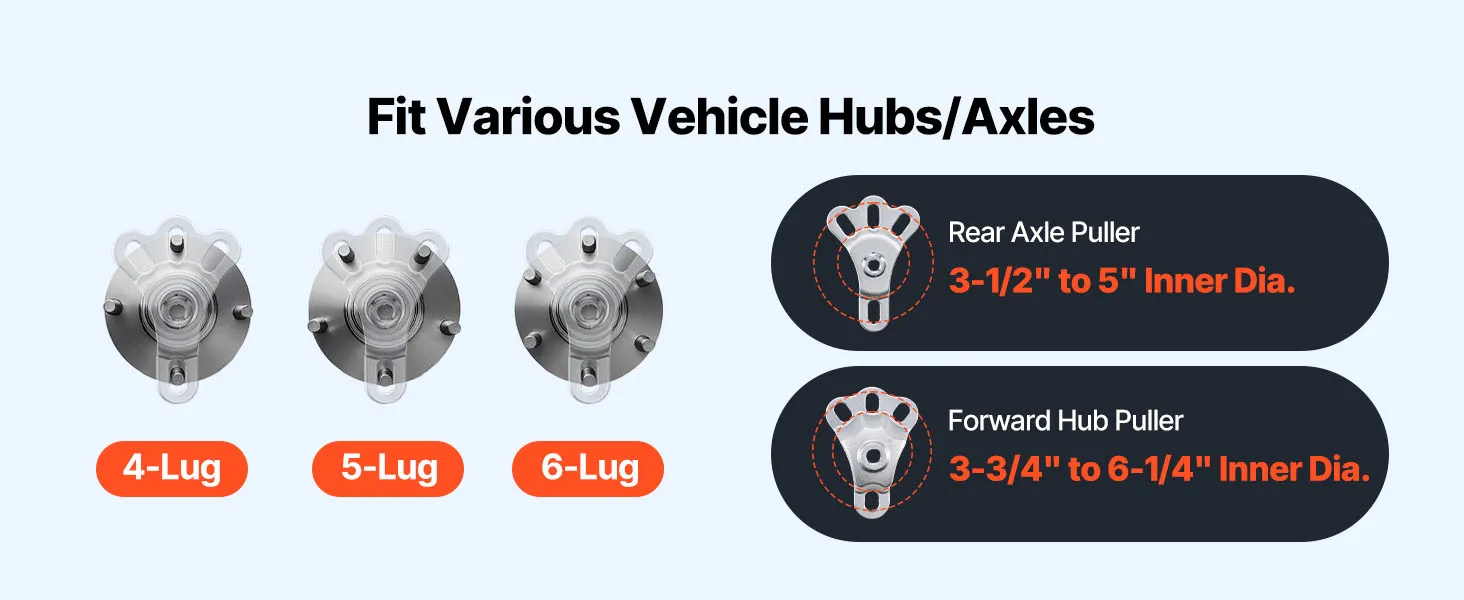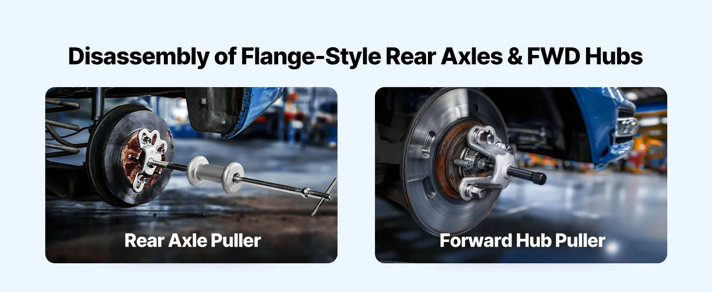 Trekt 4- tot 6-bouts naven en assen: Gebruik de achterastrekker en de FWD-naaftrekker om eenvoudig geflensde achterassen en voorwielnaven los te maken - geen hameren of beschadigen van voertuigonderdelen met onze glijhamerlagertrekker