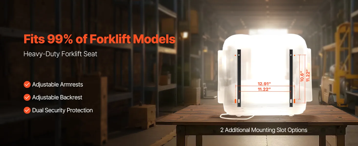 Deze heftruckstoel is geschikt voor 99% van alle heftruckmodellen en is voorzien van een verstelbare rugleuning, armleuningen en voorwaartse en achterwaartse beweging voor optimaal comfort voor verschillende lichaamstypes.