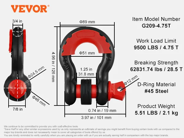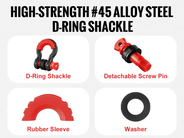 • Built for Heavy-Duty Strength: Crafted from high-grade forged 45# steel, this D-ring shackle handles towing weights up to 9500 lbs/4.75T with ease.