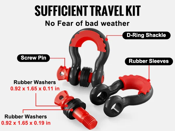 VEVOR 3/4" D-Ring Shackle, 2 Pack Alloy Steel Shackles 62832 lbs (28.5 Ton) Break Strength with 7/8" Screw Pin, Isolators & Washers, Heavy Duty Off Road Vehicle Recovery Shackle for Jeep Truck, Black VEVOR 3/4" D-Ring Shackle, 2 Pack Alloy Steel Shackles 62832 lbs (28.5 Ton) Break Strength with 7/8" Screw Pin, Isolators & Washers, Heavy Duty Off Road Vehicle Recovery Shackle for Jeep Truck, Black