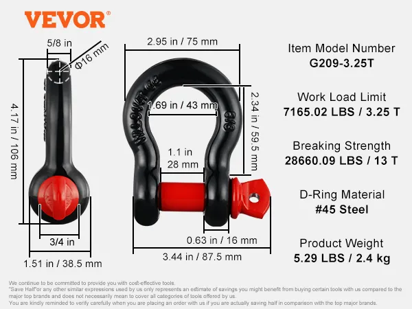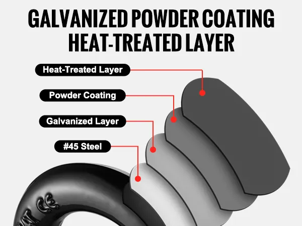 De D-ring shackle van VEVOR is voorzien van een drielaagse oppervlaktebehandeling. Deze geavanceerde behandeling maakt de shackle zeer roest- en corrosiebestendig. Zelfs bij barre weersomstandigheden behouden de shackles hun sterkte en duurzaamheid. De beschermende lagen verlengen niet alleen de levensduur van de shackle, maar zorgen ook voor consistente prestaties. Het is een ongelooflijk duurzame investering met betrekking tot uw sleep- en bergingsbehoeften.