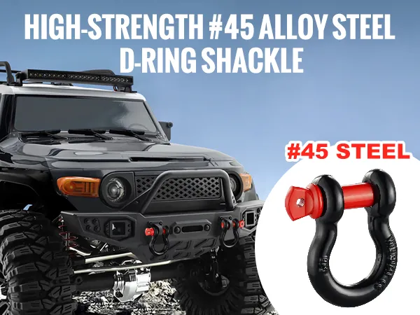 De voertuigherstelbeugel is gemaakt van dit materiaal, waardoor hij zware lasten aankan. Hij heeft een breeksterkte van 28660,09 lbs. Deze robuuste off-road herstelbeugel is ontworpen om aanzienlijke spanning te weerstaan zonder de veiligheid in gevaar te brengen. De 45# stalen constructie zorgt ervoor dat hij de meest veeleisende bergingstaken aankan. Of u nu een Jeep, vrachtwagen of SUV sleept, deze beugel levert sterke prestaties. Hij is dus betrouwbaar voor elke off-road liefhebber.