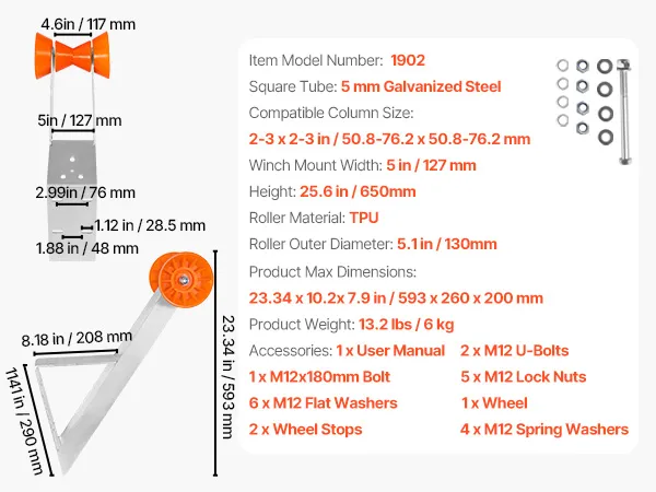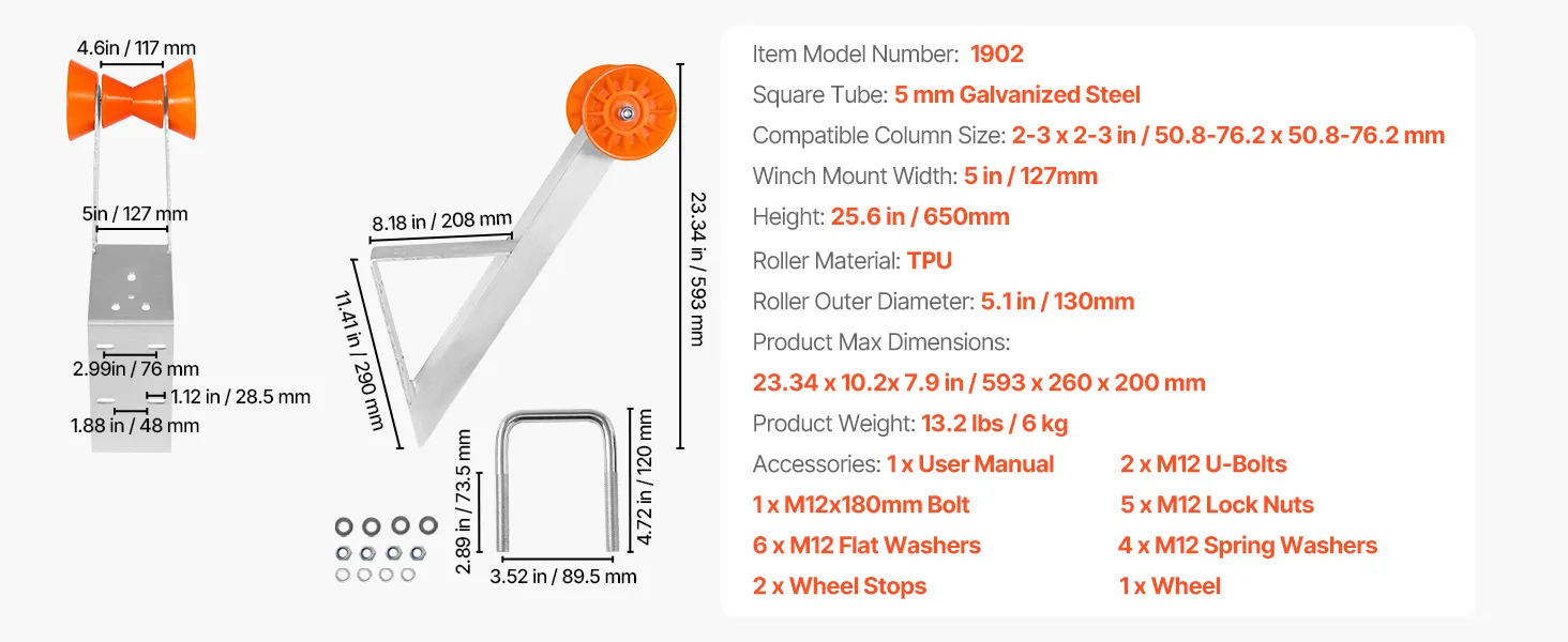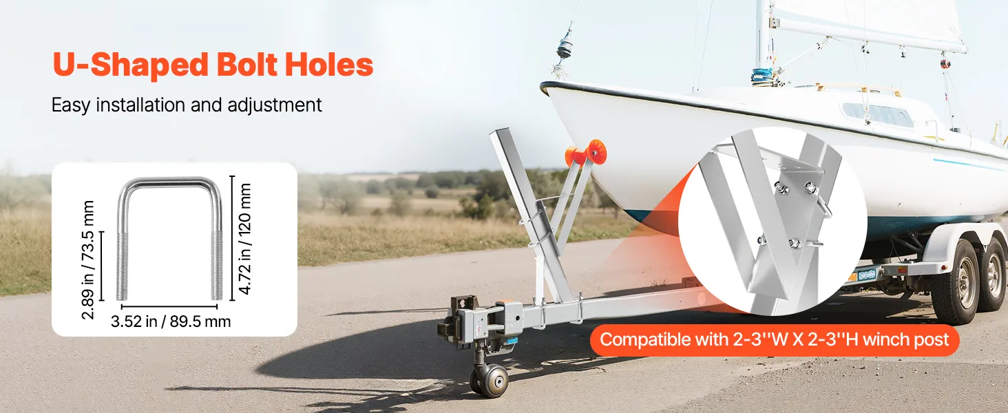 Inclusief U-bout: Geschikt voor lierpalen van 50,8-76,2 mm breed en 50,8-76,2 mm hoog. De U-bout klikt snel vast en zorgt voor een stevige grip. De lierstandaard voor de aanhanger is eenvoudig te installeren en zorgt voor stabiel, wiebelvrij transport van de aanhanger.