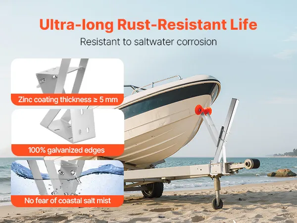 Deze lierstandaard voor aanhangwagens, gemaakt van thermisch verzinkt staal met een 5 mm dikke zinklaag, is bestand tegen zoutnevel en corrosie, zelfs bij zware weersomstandigheden. Hij is duurzaam en biedt jarenlang betrouwbare, roestvrije prestaties.