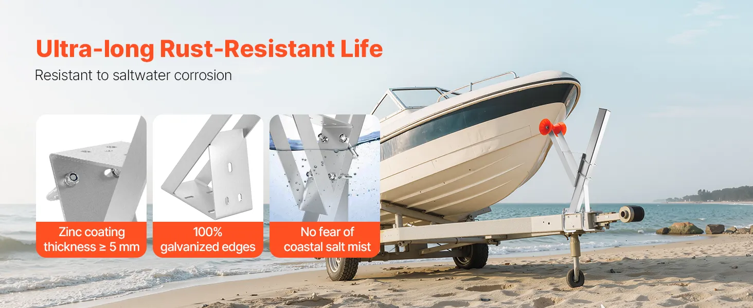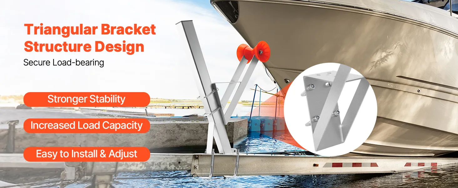 Het intelligente driehoekige ontwerp van de lierstandaard voor boottrailers verdeelt de belasting over drie punten en absorbeert de trekkracht en druk van de lier. Dit verhoogt het totale draagvermogen en verbetert de stabiliteit tijdens het gebruik.