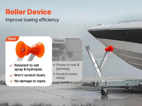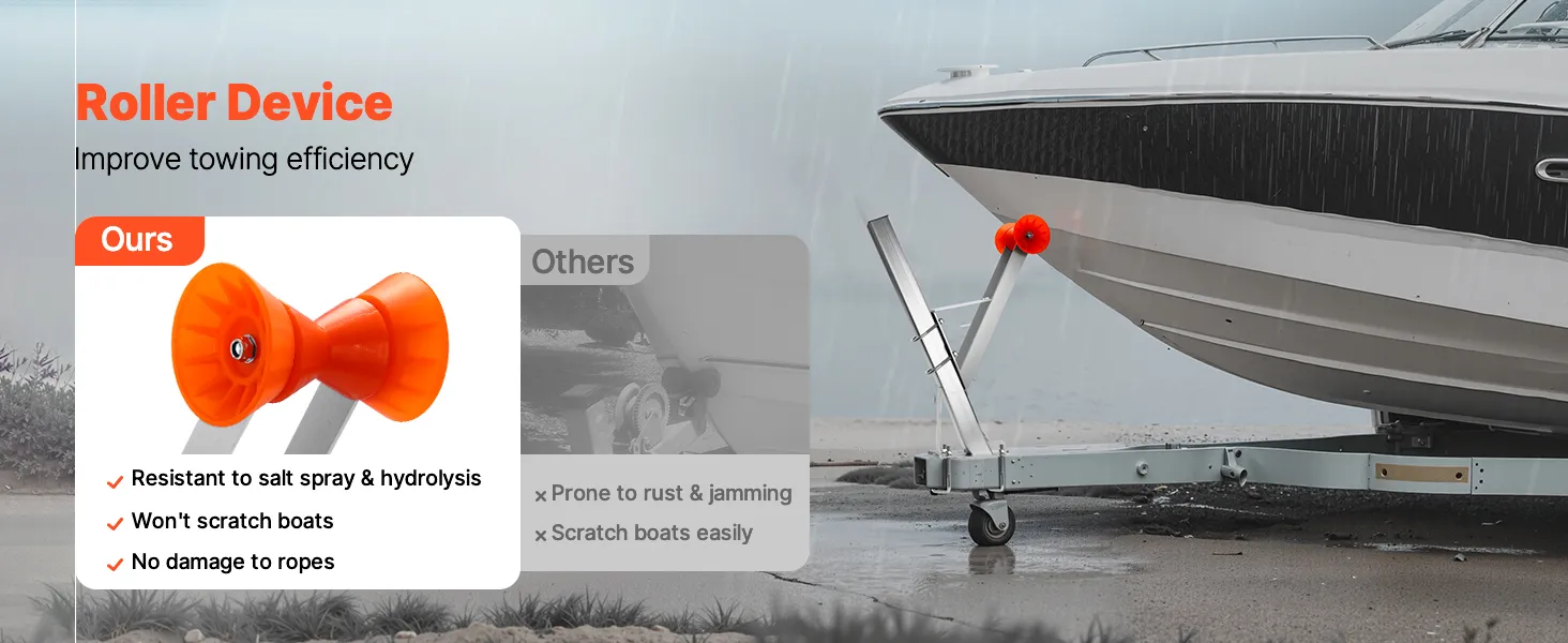 De zachte, zoutbestendige PVC-rol op de lierbevestiging van de boottrailer voorkomt schade aan de boot en de touwen. In tegenstelling tot metalen rollen biedt deze rol betere bescherming en een langere levensduur, waardoor alles in topconditie blijft, zelfs bij langdurig gebruik.