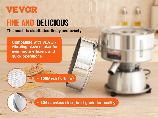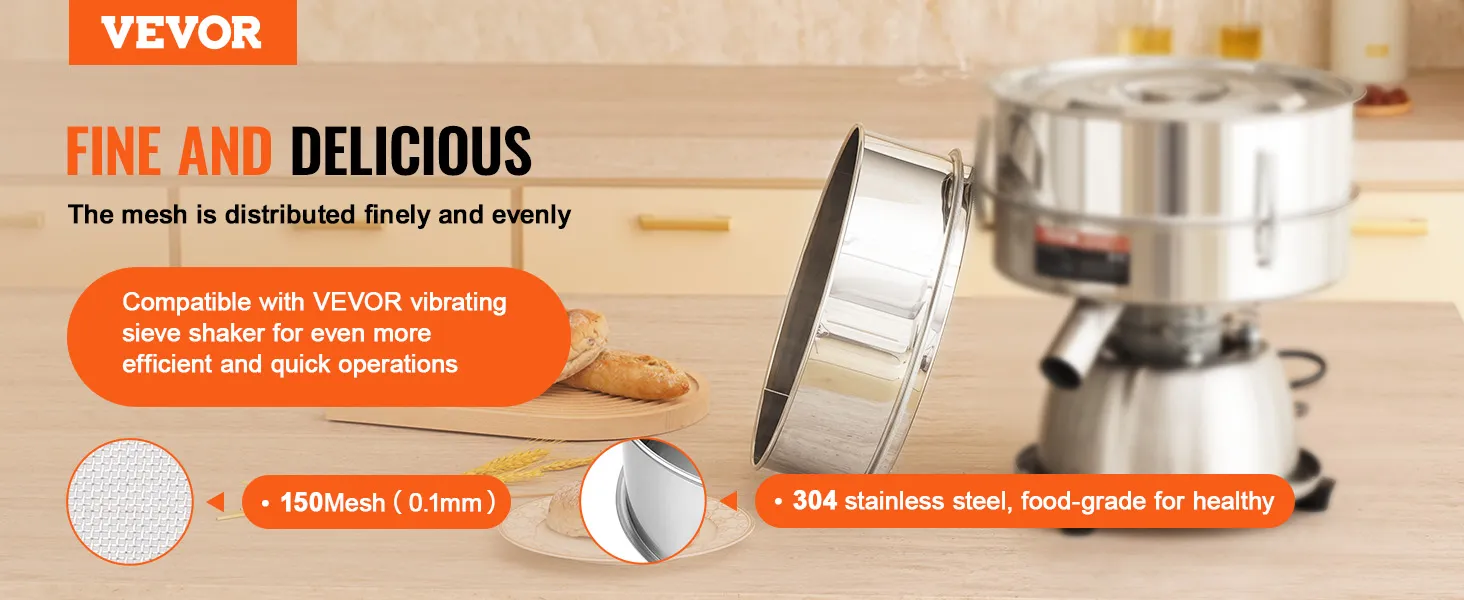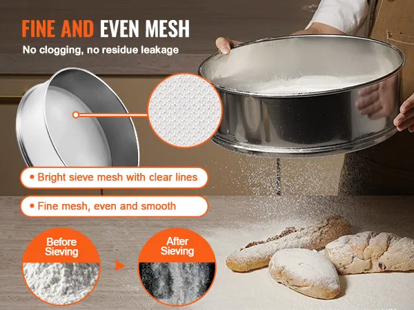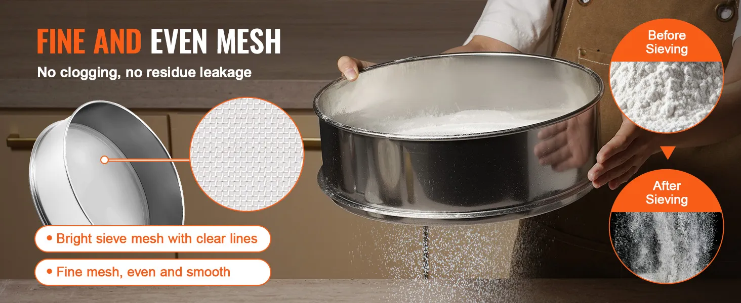 Brede toepassing: veel gebruikt in restaurants, bakkerijen, graanmolens, thuiskeukens, enz. Ideaal voor het zeven en filteren van onzuiverheden en klontjes uit droge ingrediënten zoals meel, suiker en kruiden, maar ook granen zoals bonen, rijst en pasta.