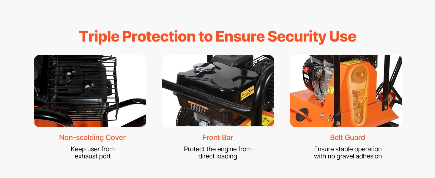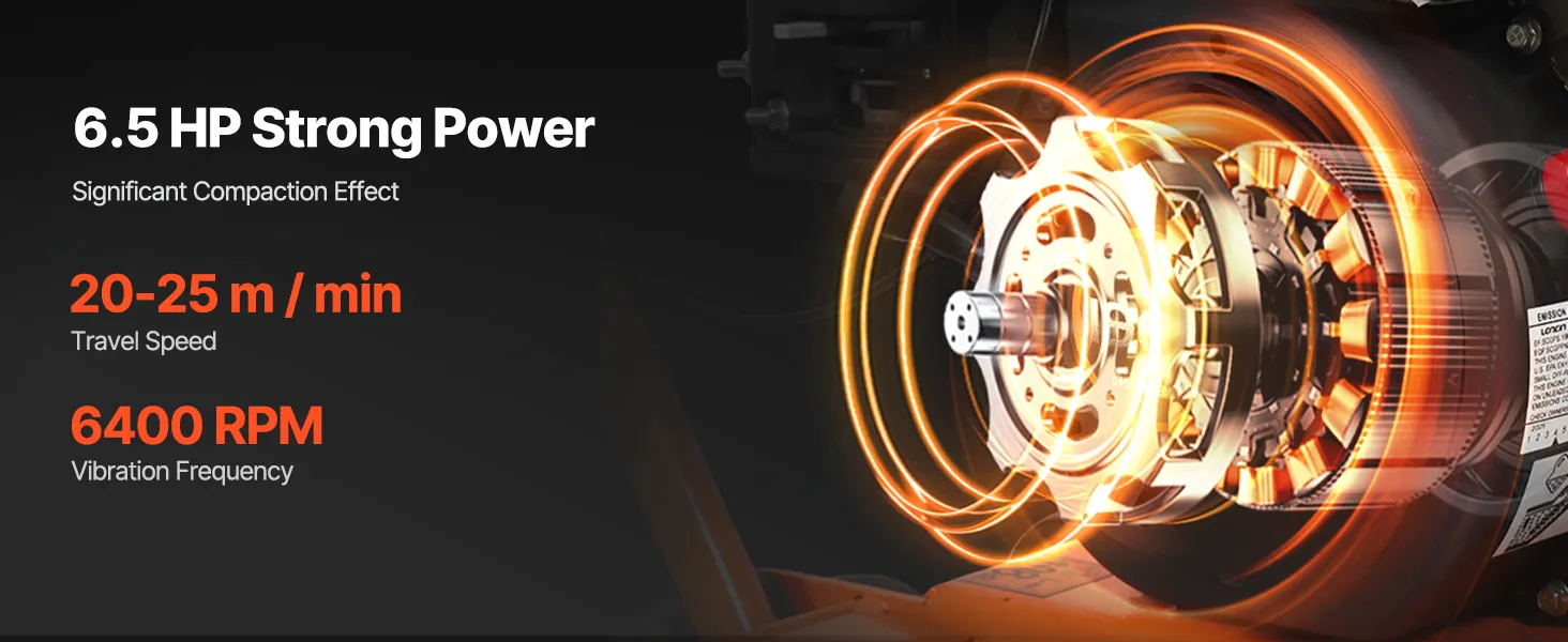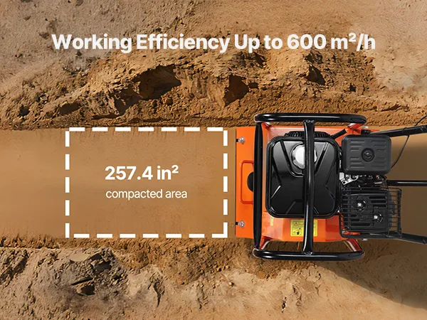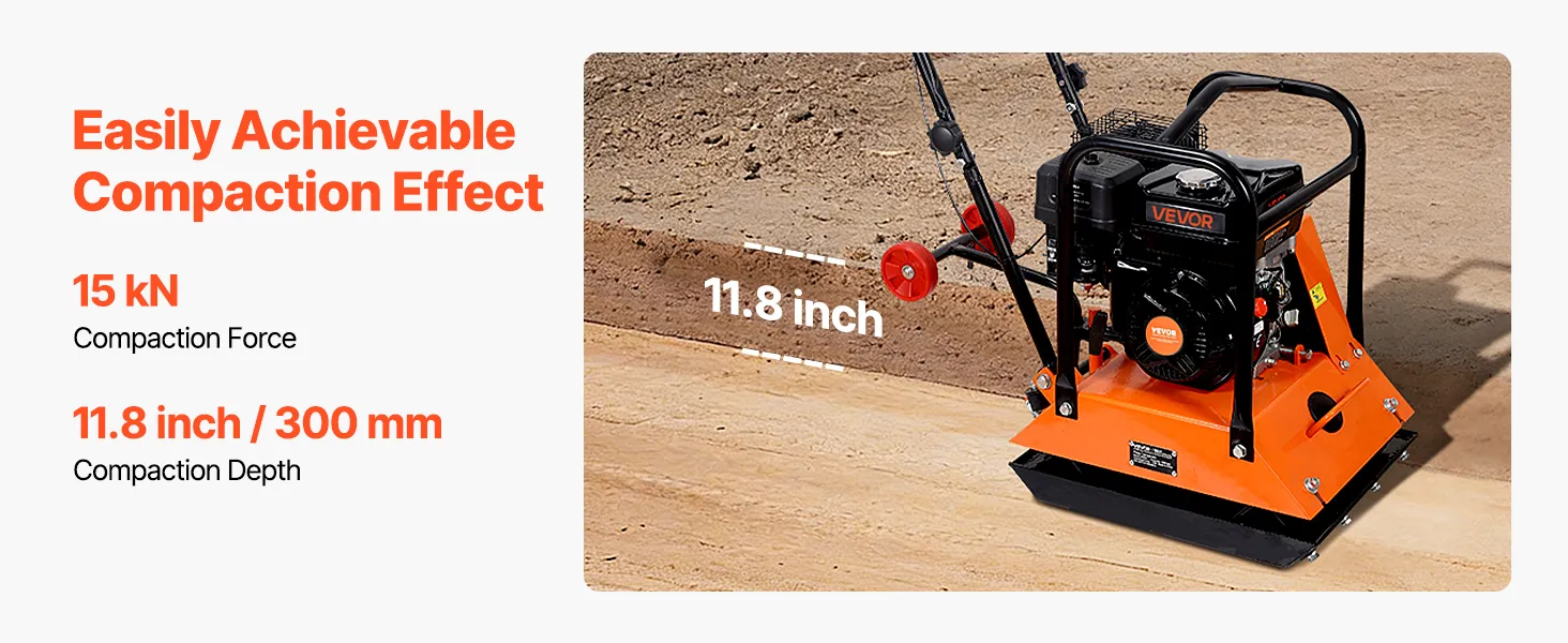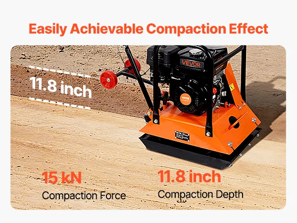 Grote brandstoftank: Deze benzine-aangedreven trilplaatverdichter heeft een olietank van 0,6 liter en een brandstoftank van 3,6 liter. Gebruik benzine met een octaangetal van 95. Gewoon bijvullen en aan de slag. Om de motor te beschermen, wordt een maximale continue gebruiksduur van 40 minuten aanbevolen.