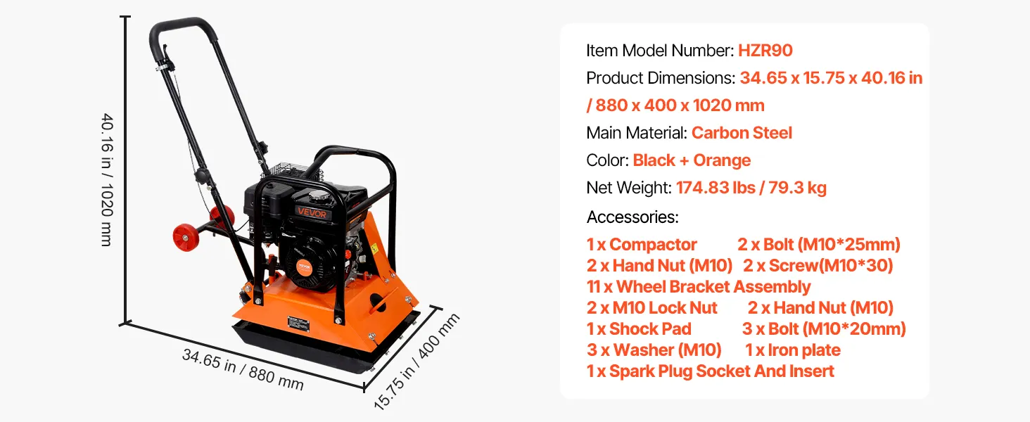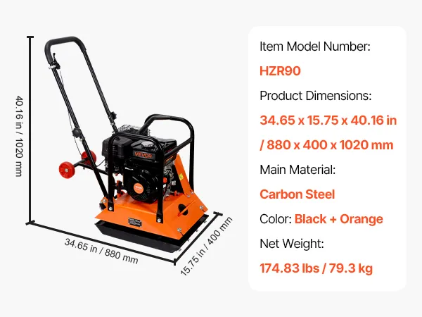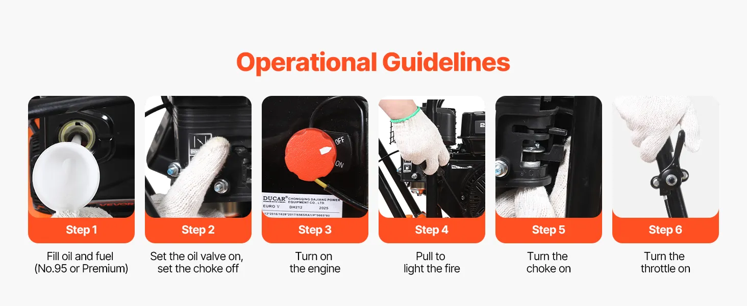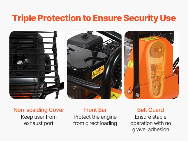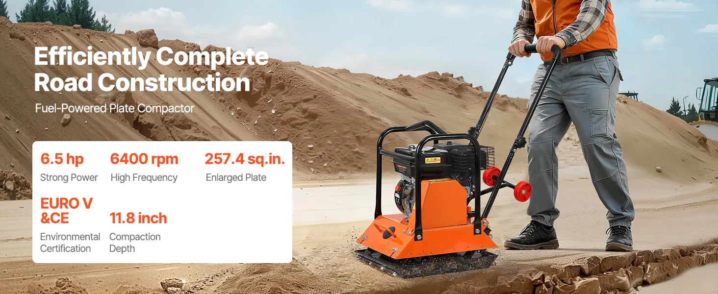 Grote brandstoftank: Deze benzine-aangedreven trilplaatverdichter heeft een olietank van 0,6 liter en een brandstoftank van 3,6 liter. Gebruik benzine met een octaangetal van 95. Gewoon bijvullen en aan de slag. Om de motor te beschermen, wordt een maximale continue gebruiksduur van 40 minuten aanbevolen.