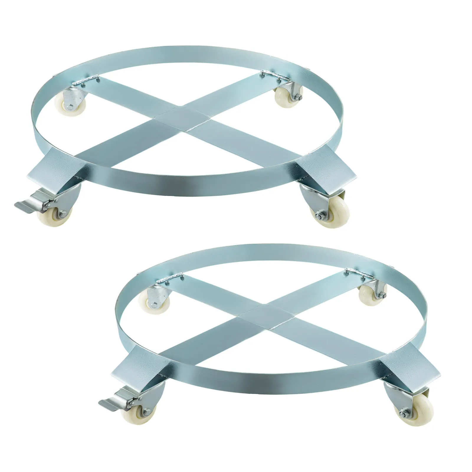 Premium heavy-duty 55 gallon drum dolly, robuust ontworpen en gemaakt van de hoogste kwaliteit materialen. Vier duurzame zwenkwielen zorgen voor stabiliteit en gemakkelijk duwen, en het ontwerp met gekruiste banden voorkomt kromtrekken en kantelen en helpt uw lading veilig te houden. Geweldig voor winkels, garages, fabrieken, magazijnen en meer.