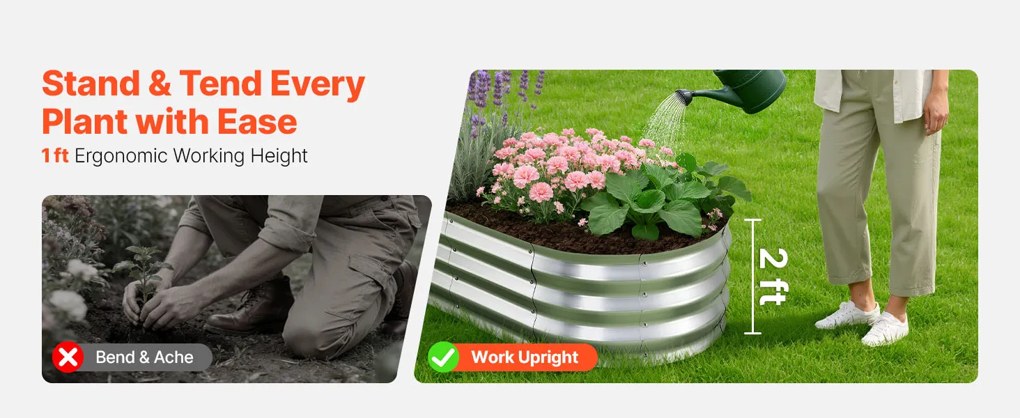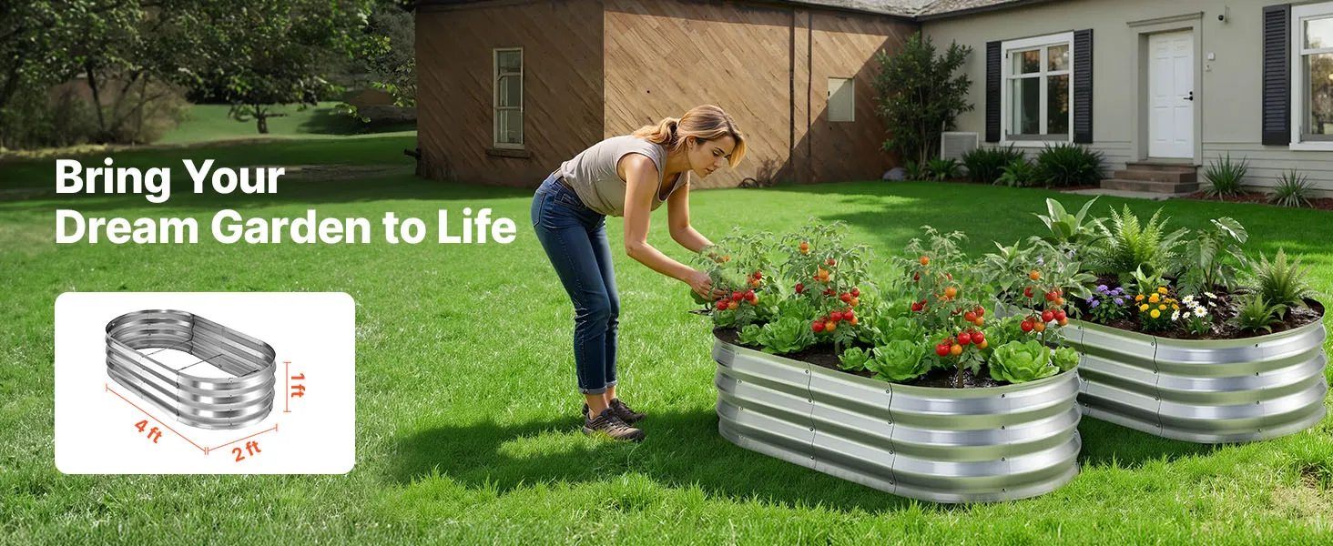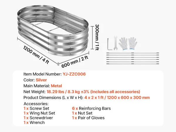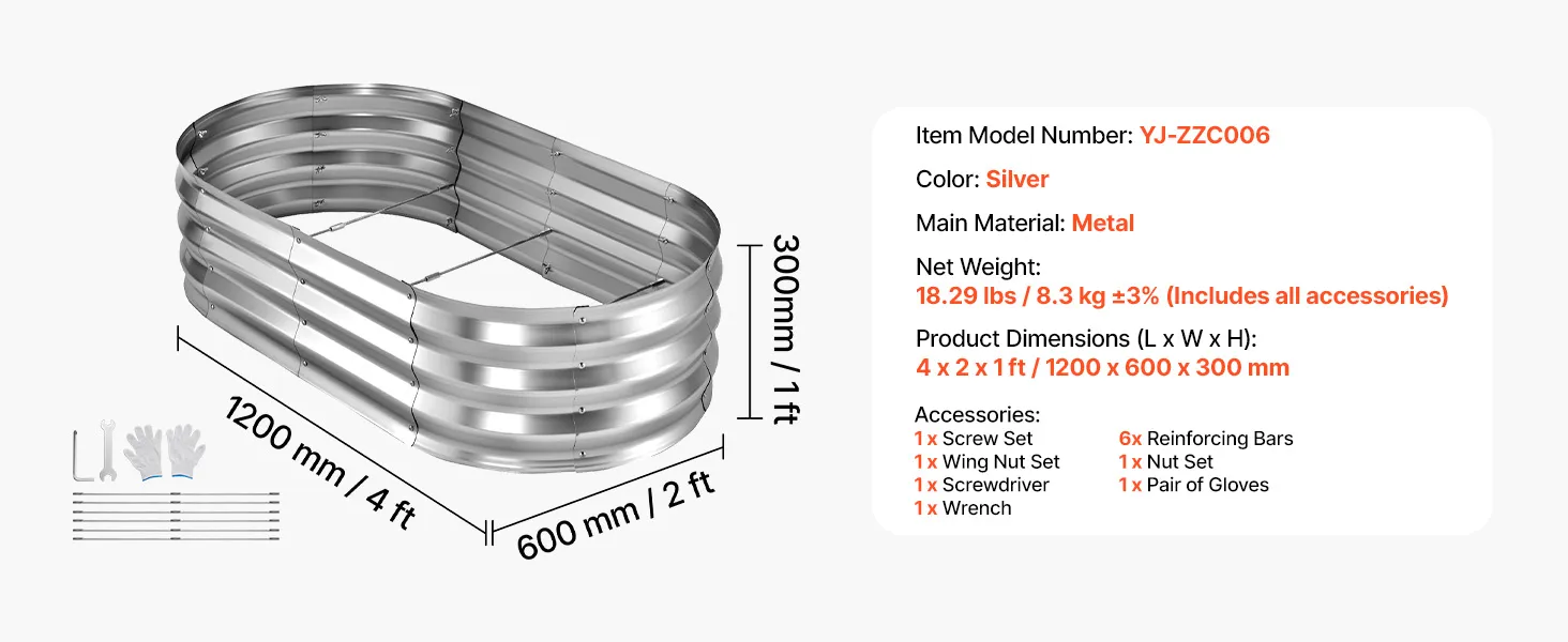 VEVOR Verhoogd tuinbed, Metaal, 2-delige set, 120x60x30 cm, Ovaal tuinbed, Plantenbakset voor buiten, Groentebed met handschoenen, Bloembed, Plantbed voor bloemen en groenten, Zilver