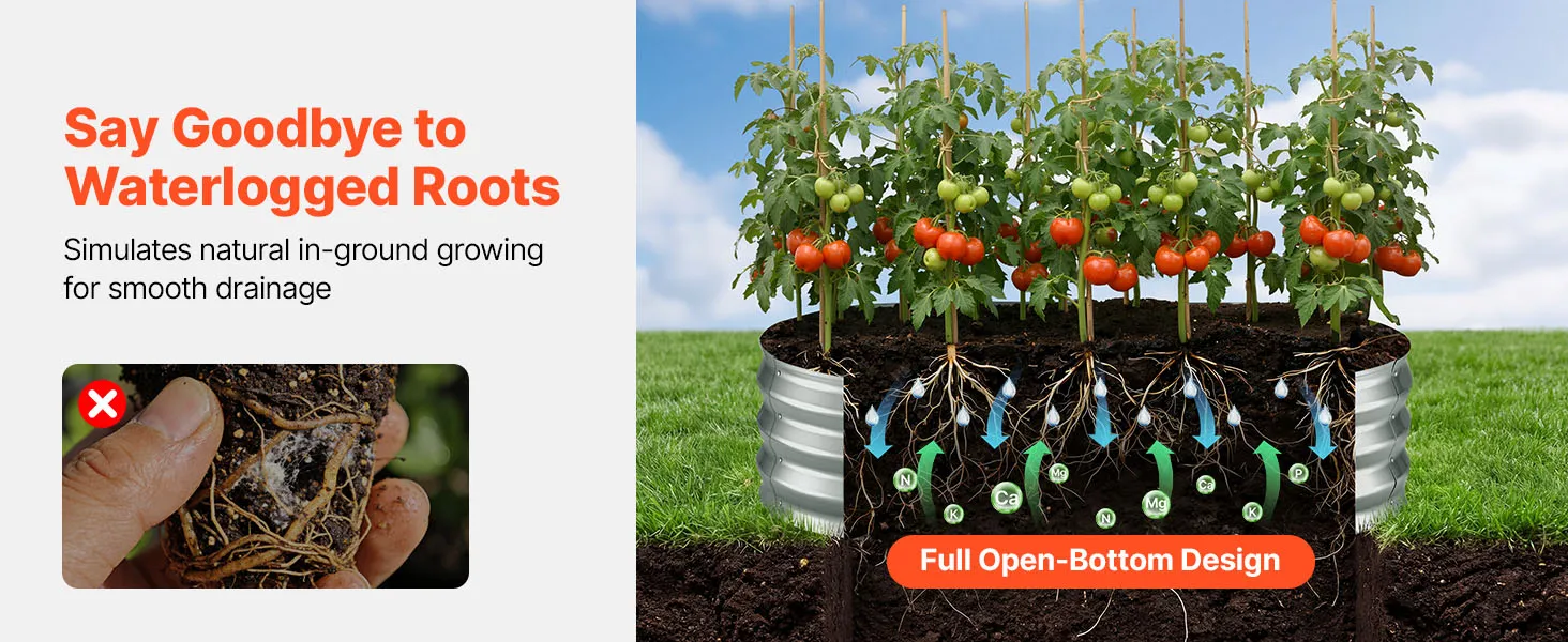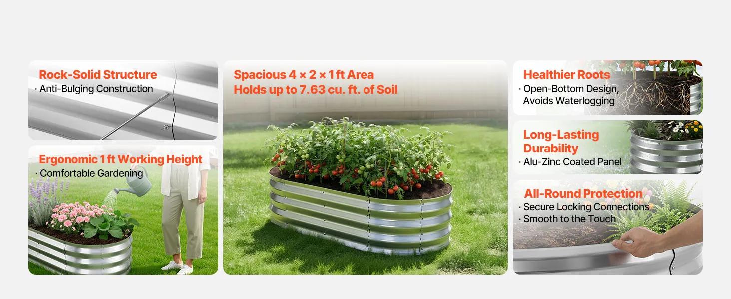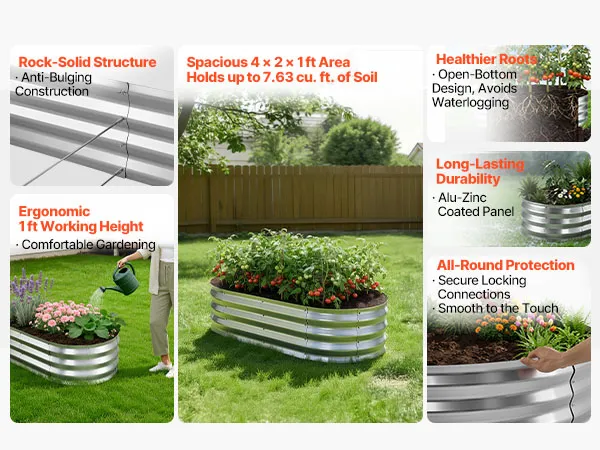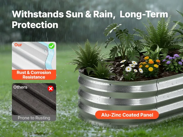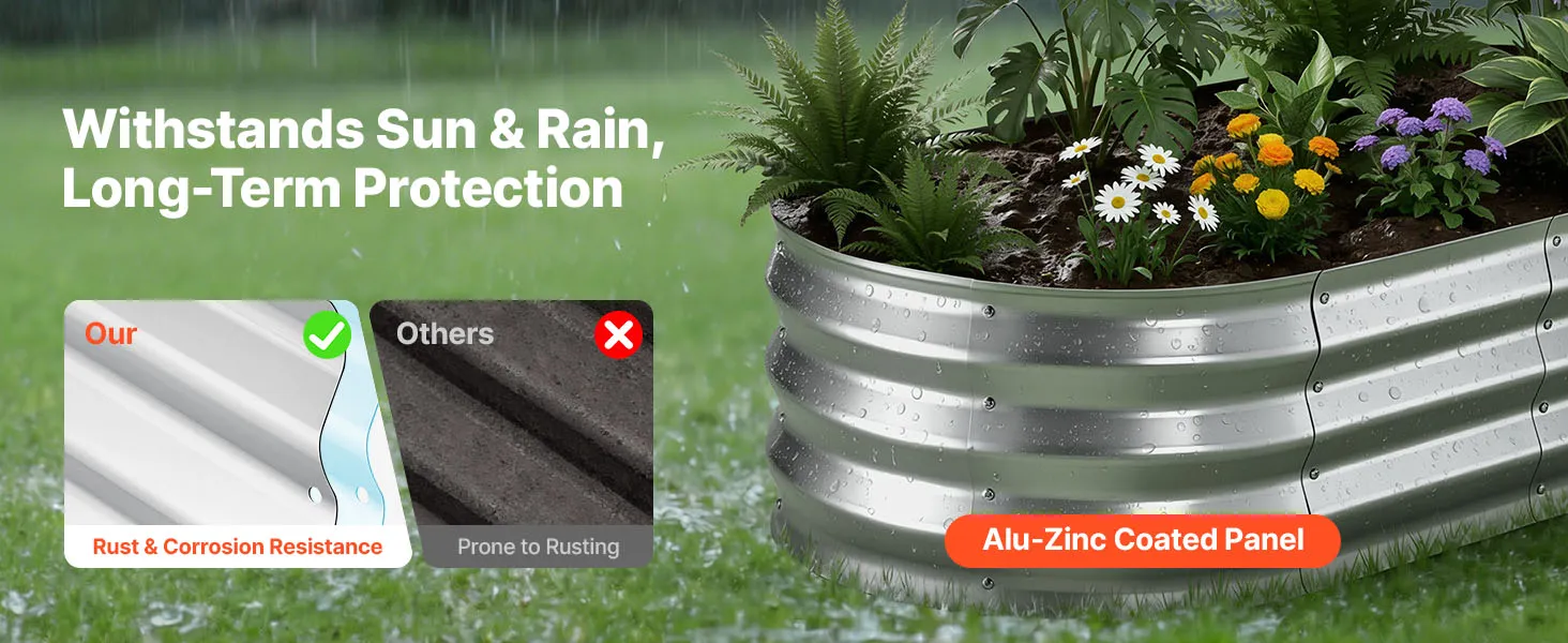 Dankzij de robuuste constructie van aluminium-zink gecoate panelen en de versterkte structuur is dit verhoogde plantenbed geschikt voor langdurig gebruik buitenshuis. Het open bodemontwerp zorgt voor een snelle afwatering, waardoor u gemakkelijk uw droomtuin kunt creëren.