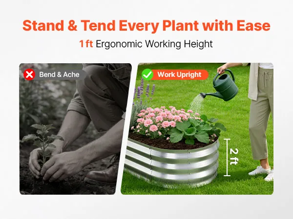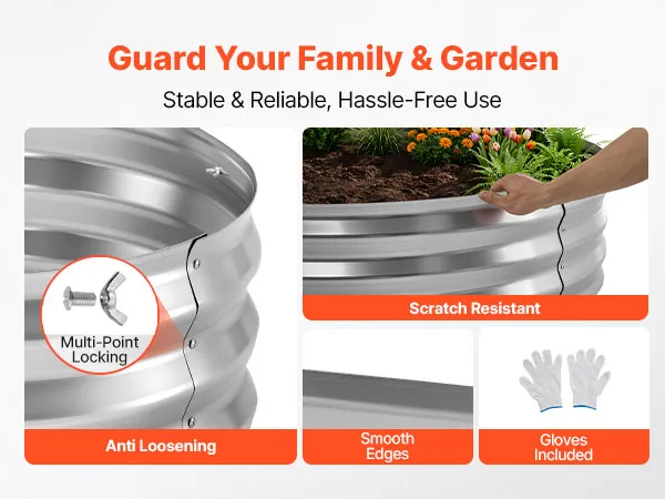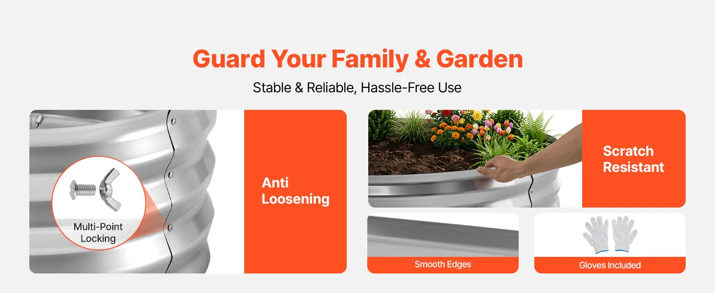 Deze verhoogde plantenbak heeft gladde, afgeronde randen om snijwonden en krassen tijdens de installatie en het dagelijks gebruik te voorkomen.