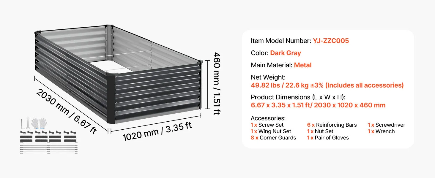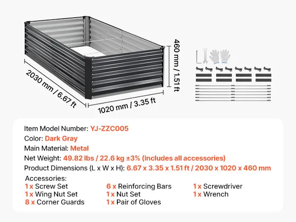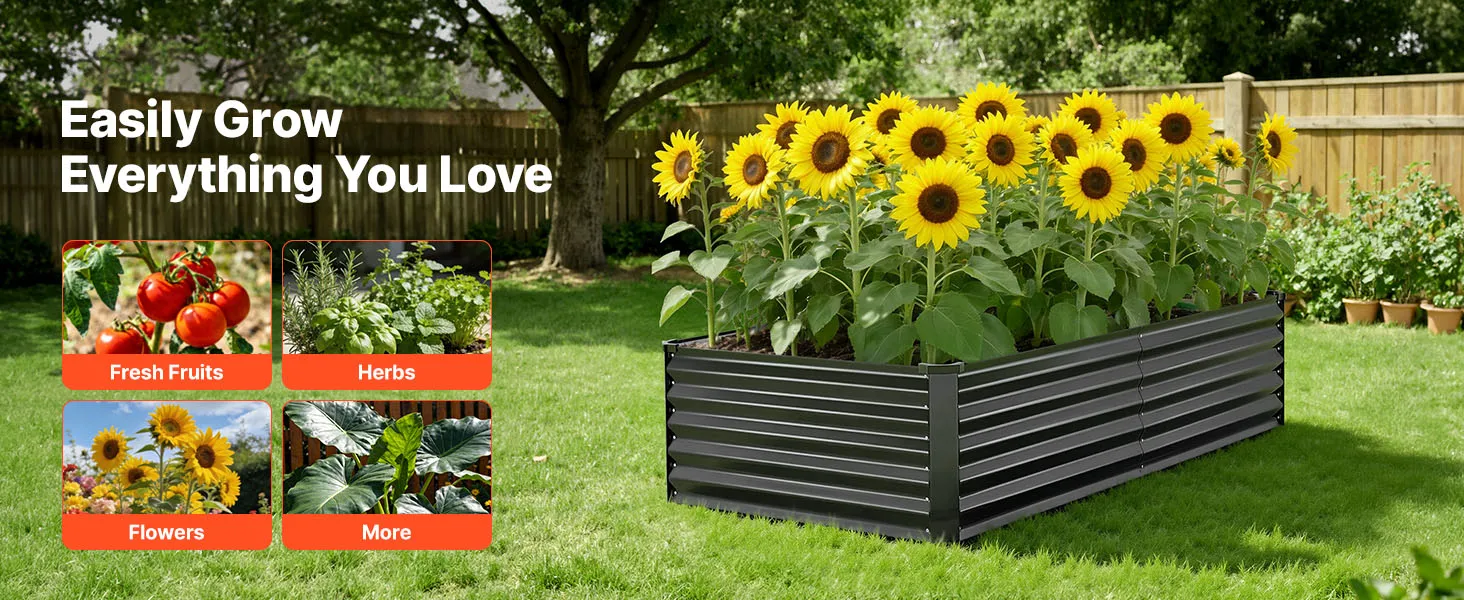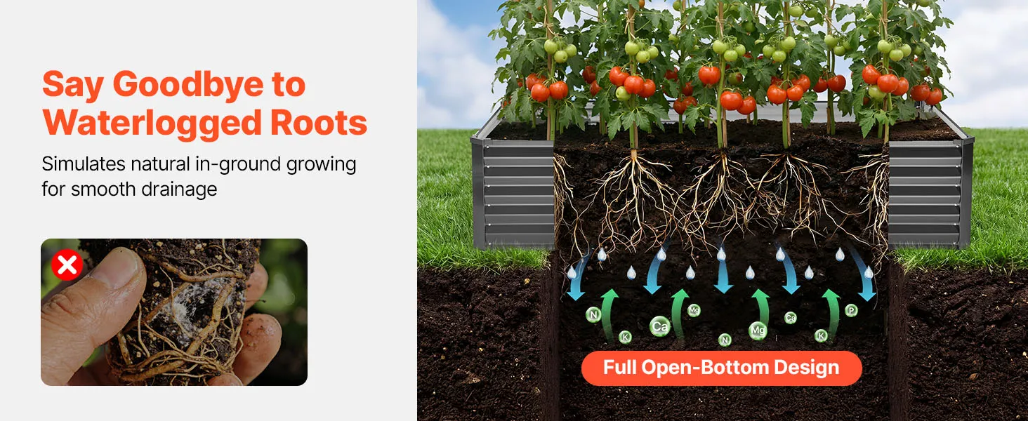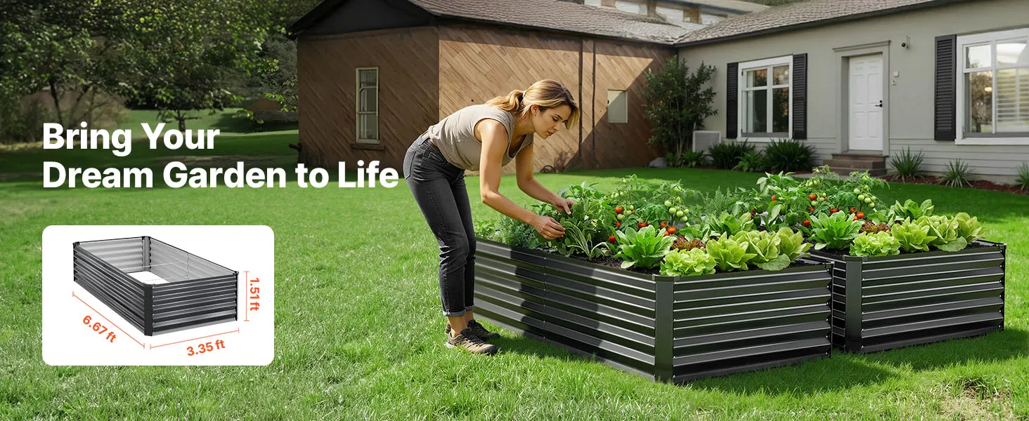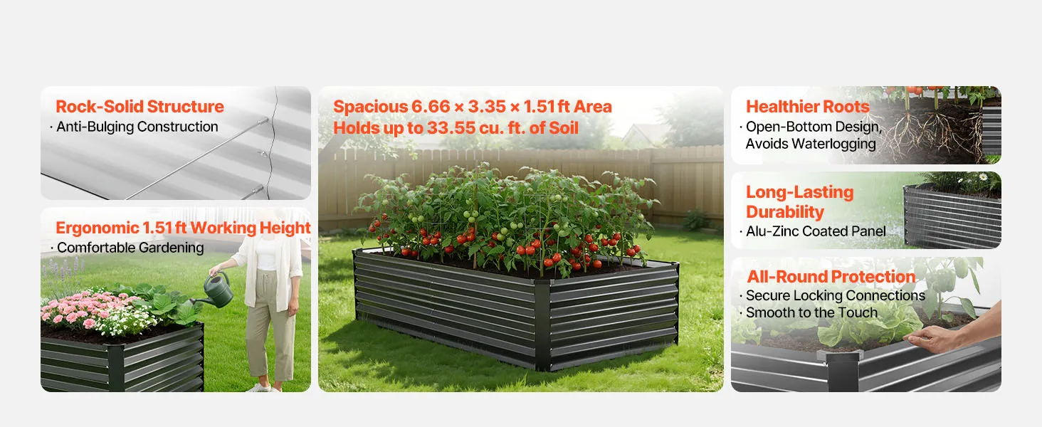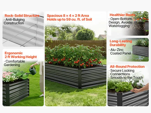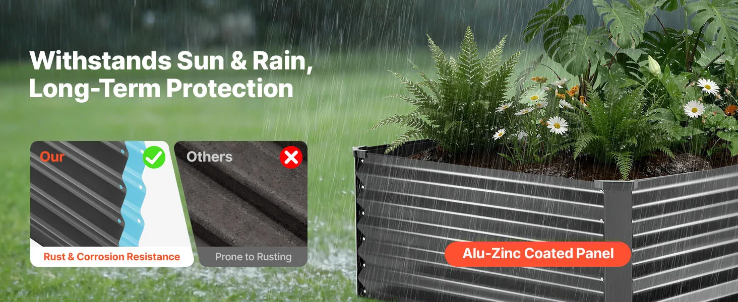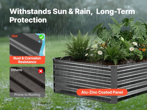 Dankzij de robuuste constructie van aluminium-zink gecoate panelen en de versterkte structuur is dit verhoogde tuinbed geschikt voor langdurig gebruik buitenshuis. Het open bodemontwerp zorgt voor een snelle afwatering, waardoor u gemakkelijk uw droomtuin kunt creëren.