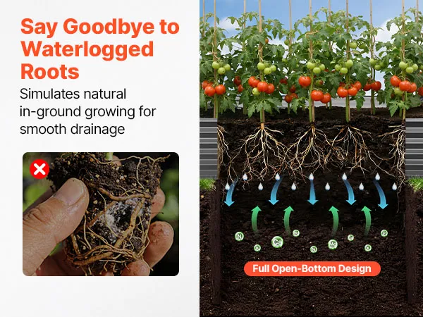 Extra groot plantoppervlak: Deze verhoogde plantenbak biedt een royaal plantoppervlak van 203 x 102 x 46 cm met voldoende ruimte voor aarde. Wortels hebben volop ruimte om zich zowel verticaal als horizontaal te verspreiden, wat een gezonde groei van groenten en andere planten bevordert.