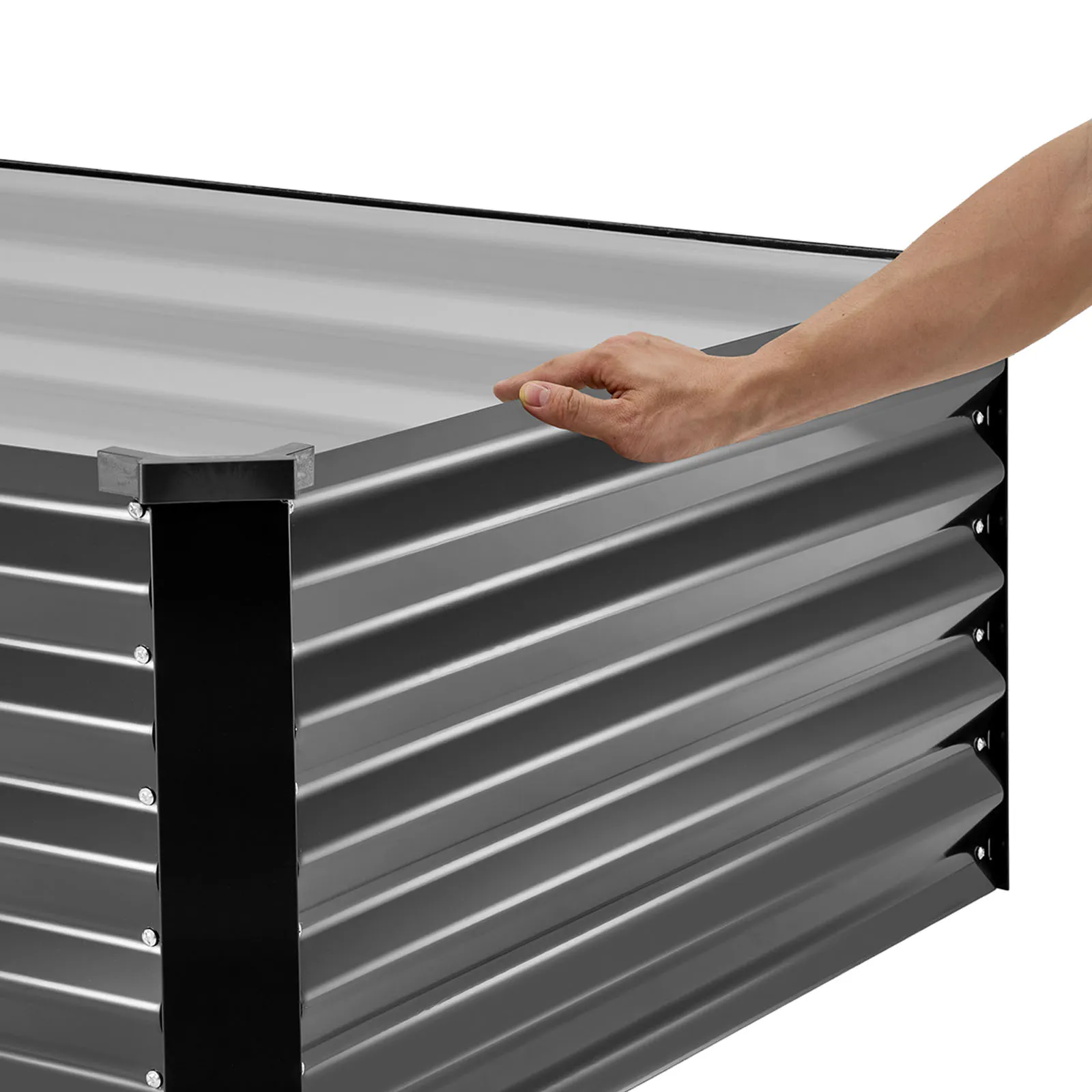 Deze verhoogde plantenbak heeft gladde, afgeronde randen om snijwonden en krassen tijdens de installatie en het dagelijks gebruik te voorkomen.