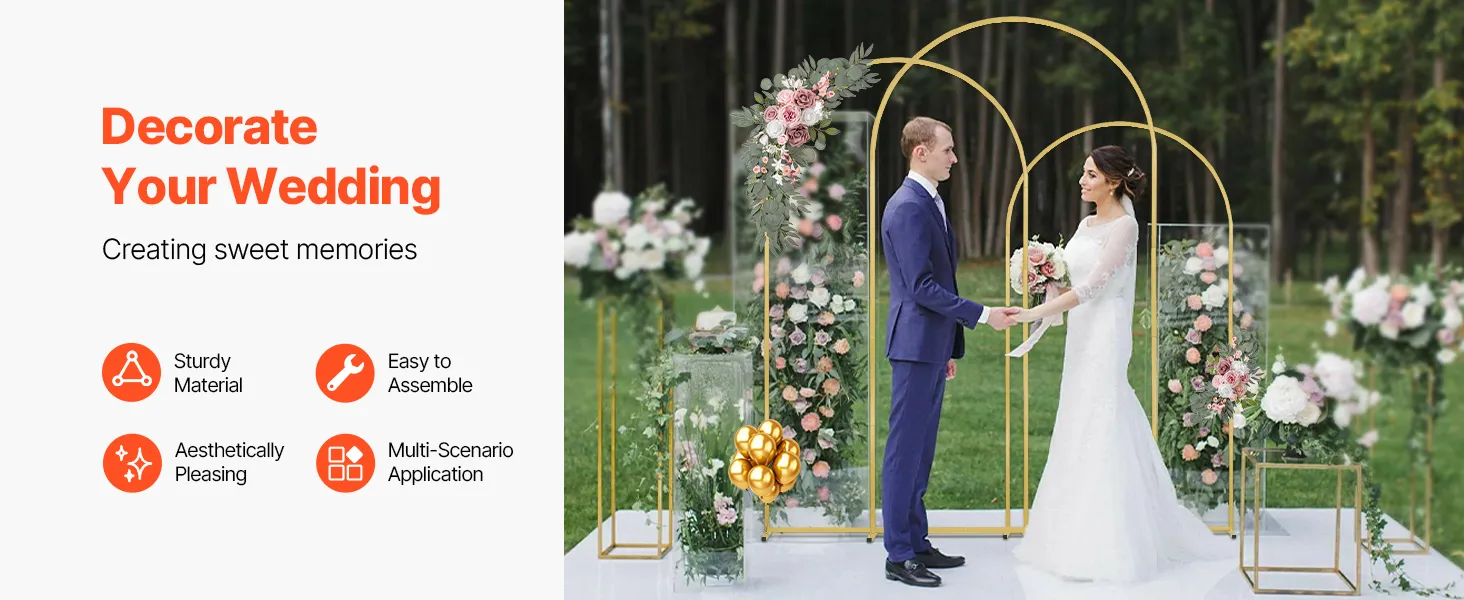 Ideal for weddings, parties, holidays, or storefront displays, this adaptable wedding arch backdrop stand enhances every setting, leaving a lasting impression.