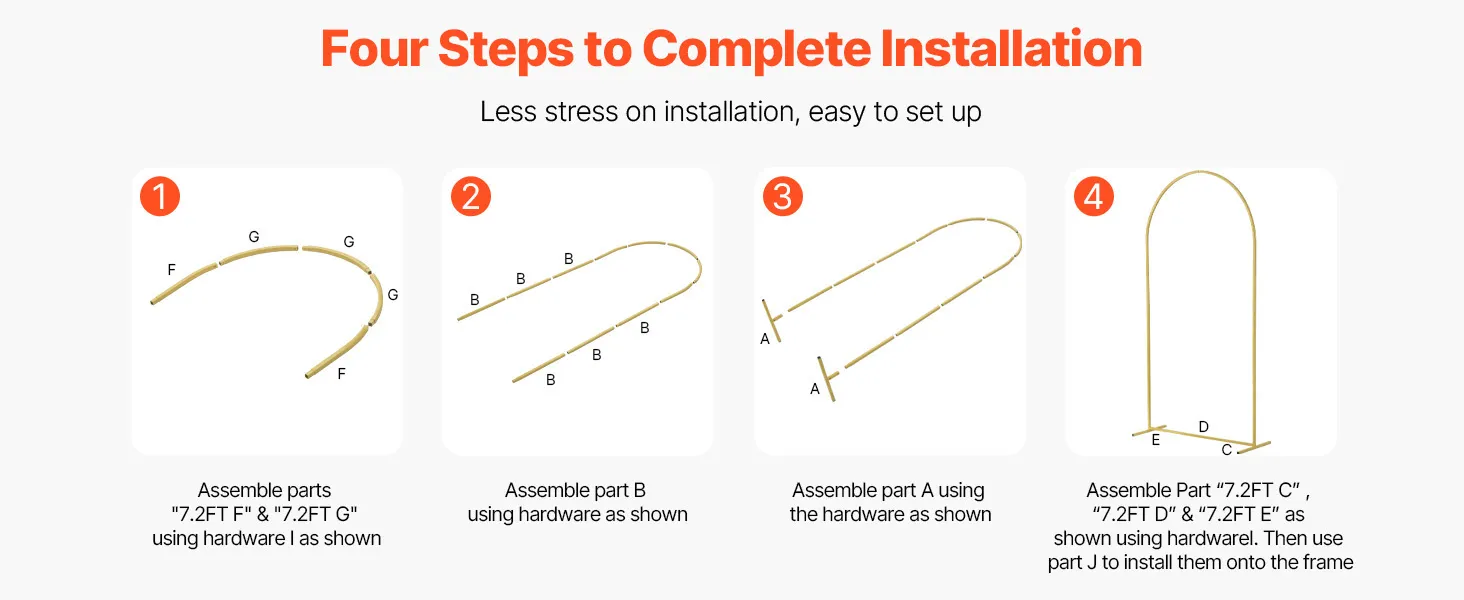 Easy Installation: Enjoy our easy-to-install process. Each part of this wedding arch backdrop stand is labeled with corresponding numbers that match the instruction manual, making assembly simple and stress-free.