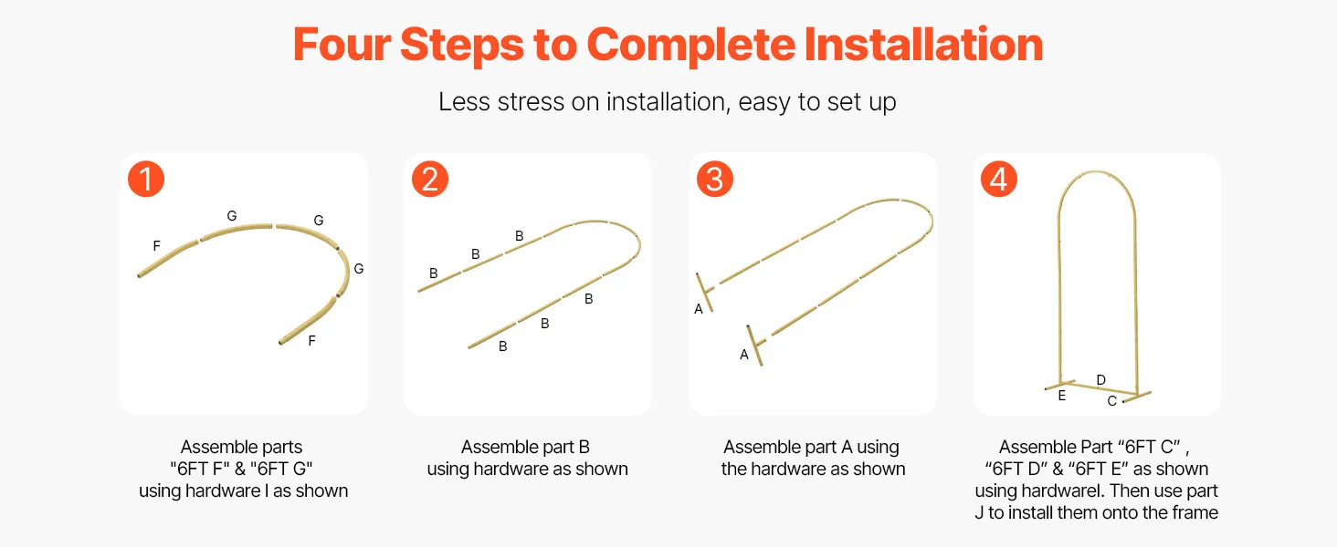 Easy Installation: Enjoy our easy-to-install process. Each part of this wedding arch backdrop stand is labeled with corresponding numbers that match the instruction manual, making assembly simple and stress-free.