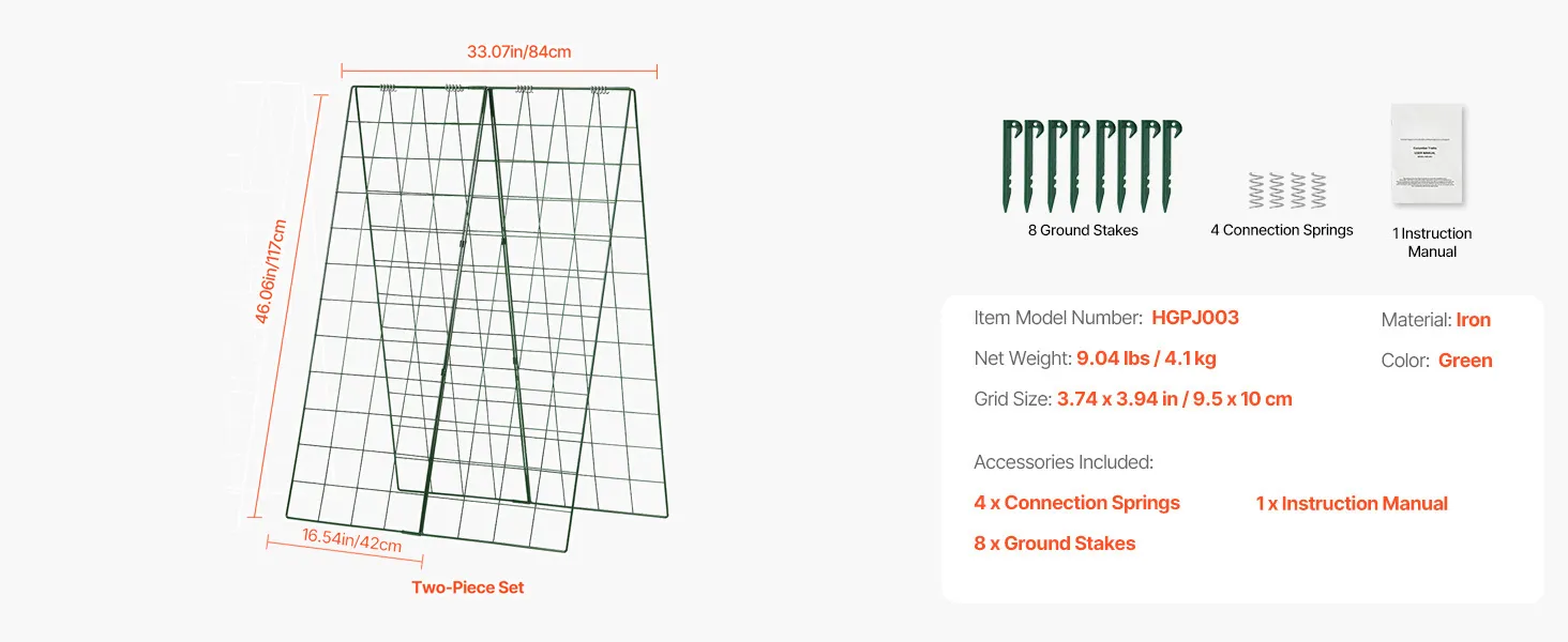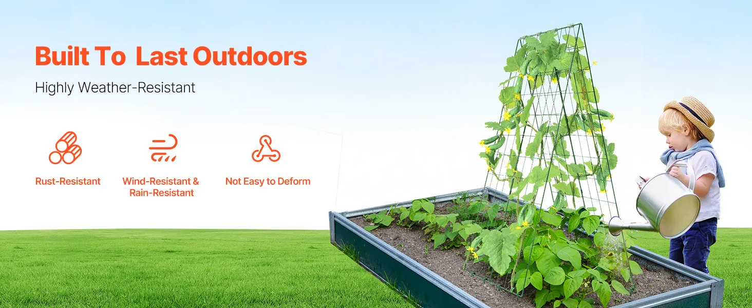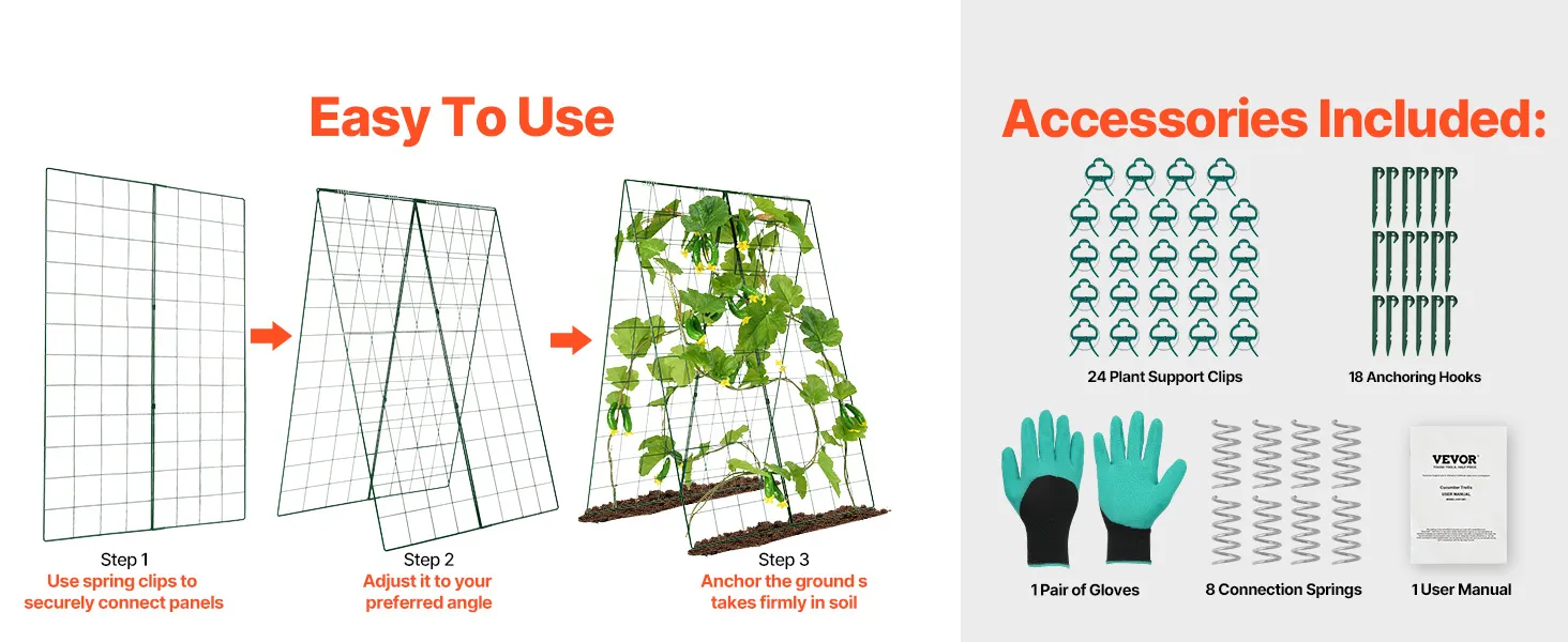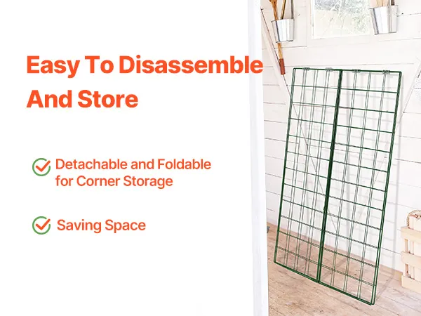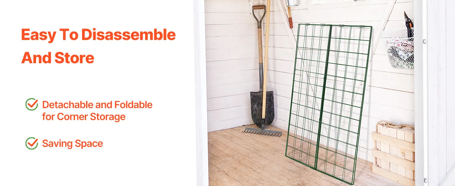 Eenvoudig te gebruiken en op te bergen: Dankzij de gereedschapsloze montage is de set snel en eenvoudig op te zetten. Wanneer u het A-frame trellis niet gebruikt, kunt u het eenvoudig demonteren en opvouwen voor een compacte opslag.