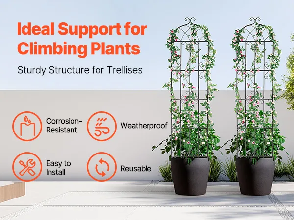 All-Weather Durability: Featuring a robust powder-coated finish, this garden trellis for climbing plants is built to resist rust and corrosion, ensuring it withstands the elements while looking great for years to come.