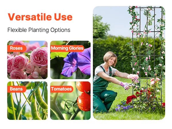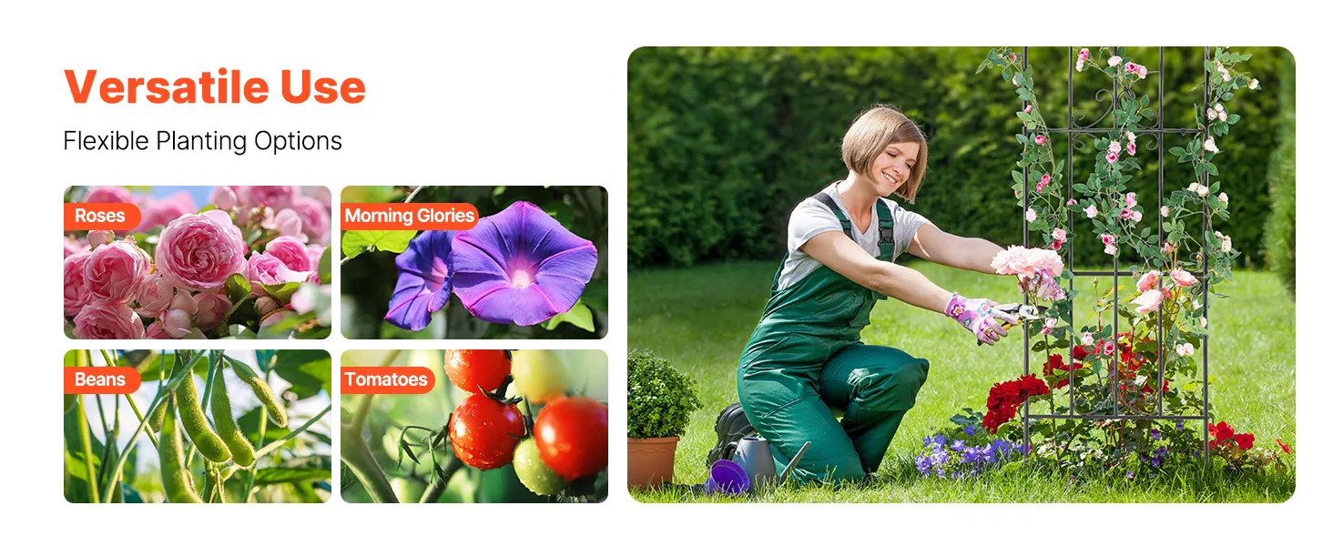 Experience the fun of multi-purpose planting! This outdoor plant trellis adapts easily to support a variety of plants, whether flowers or vegetables, offering endless possibilities for a lush, green lifestyle.