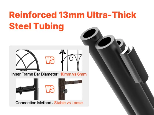 Choose a metal garden trellis designed for peace of mind. With ultra-thick 13mm steel tubing, it provides solid support for your plants, letting you enjoy the joy of watching your greenery flourish without worry!