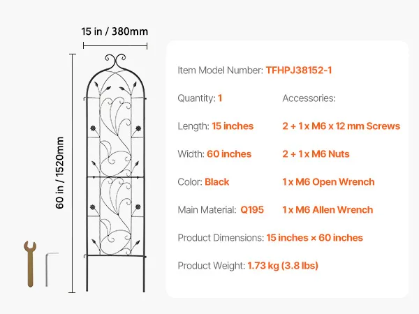 Designed for durability and stability, this elegant garden trellis withstands the elements while offering robust support for your plants. Ideal for flowers, vegetables, and fruits, it meets diverse planting needs and enhances your garden with an artistic touch.
