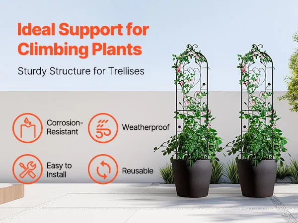 All-Weather Durability: Featuring a robust powder-coated finish, this garden trellis for climbing plants is built to resist rust and corrosion, ensuring it withstands the elements while looking great for years to come.