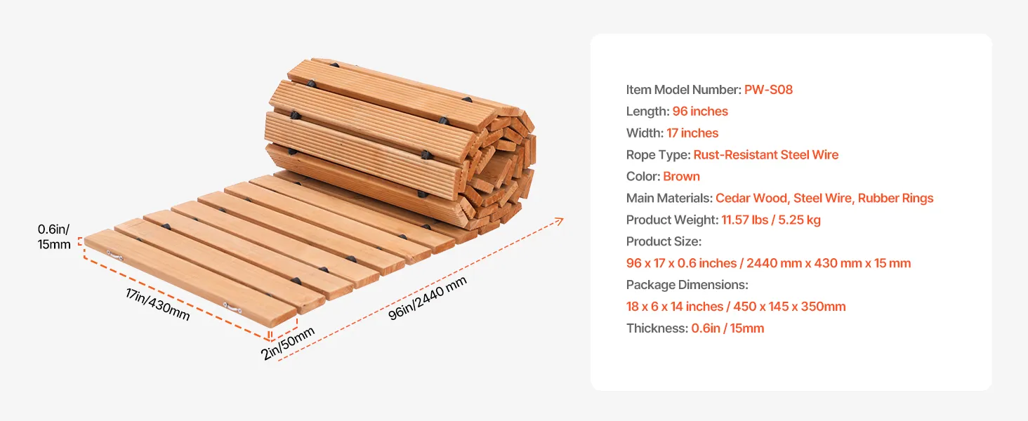 Aesthetic Appeal: This wooden garden pathway measures 96 inches long and 17 inches wide, enhancing the visual attractiveness of any outdoor space while keeping your shoes clean and dust-free.