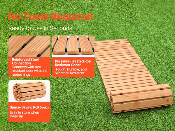 This wooden garden pathway is both beautiful and practical, preventing mud while providing stability. Made from pressure-treated cedar, it features a non-slip design for safety. Ideal for gardens, patios, and gatherings, it's easy to store and perfect for various outdoor settings.
