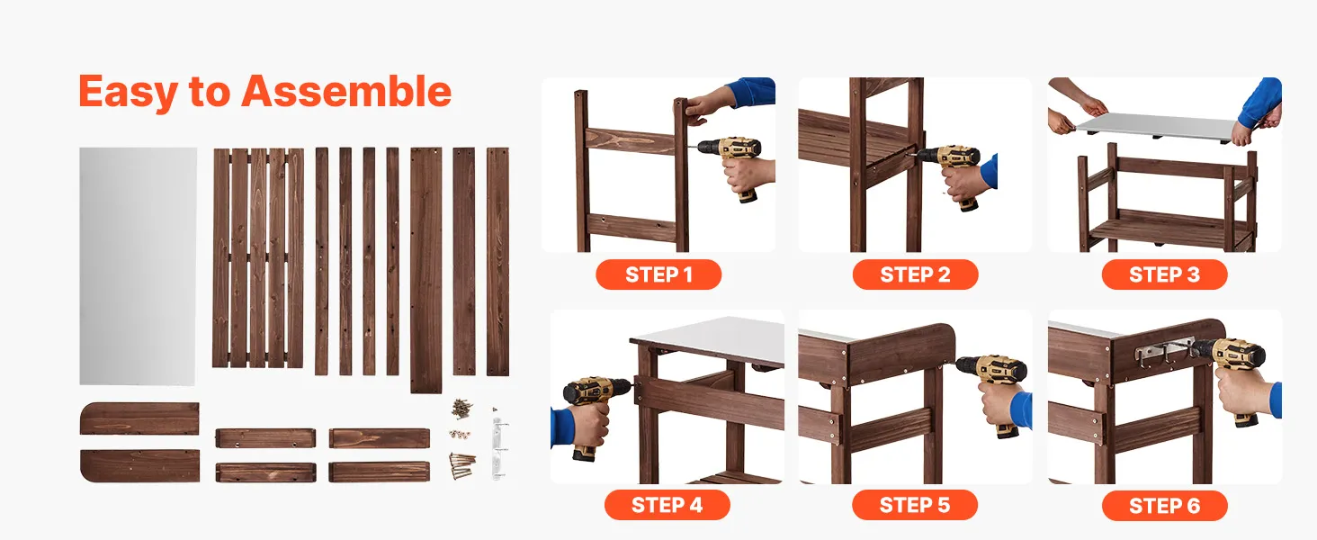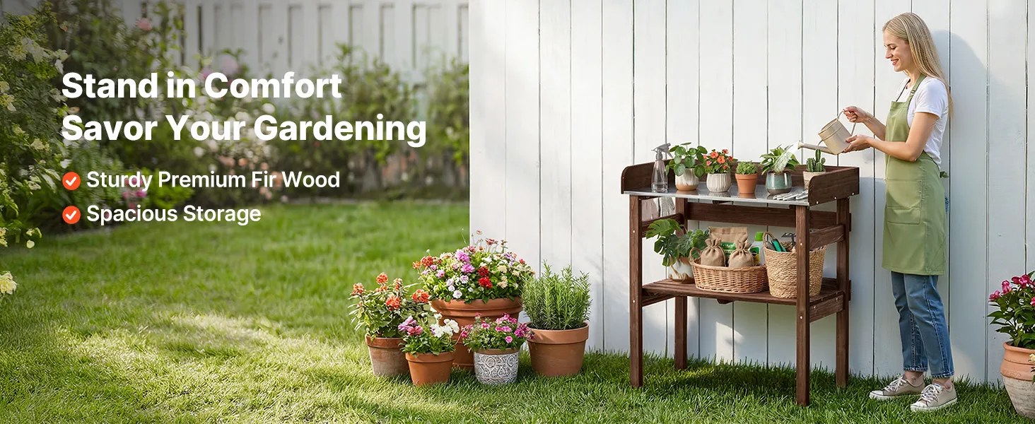 Deze oppottafel is een grote hulp bij het tuinieren. Hij biedt een verhoogd werkoppervlak voor het water geven, snoeien, bemesten en planten. Nooit meer bukken of knielen – u kunt comfortabel staand werken, zonder rugpijn te krijgen.