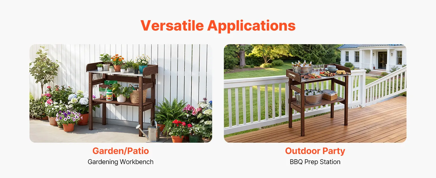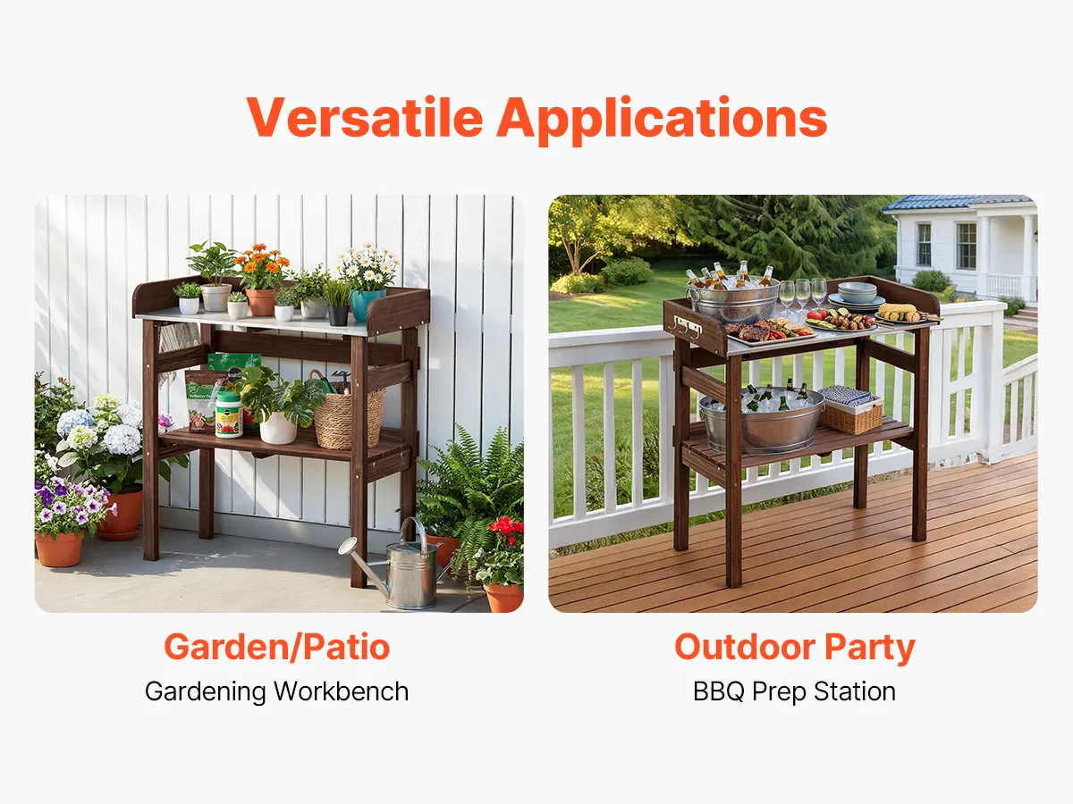 Veelzijdig gebruik: Deze plantentafel is geschikt als werkblad in de tuin of op het terras voor de verzorging van planten en dient tevens als barbecue-voorbereidingsstation – ideaal voor het klaarzetten van ingrediënten en drankjes.
