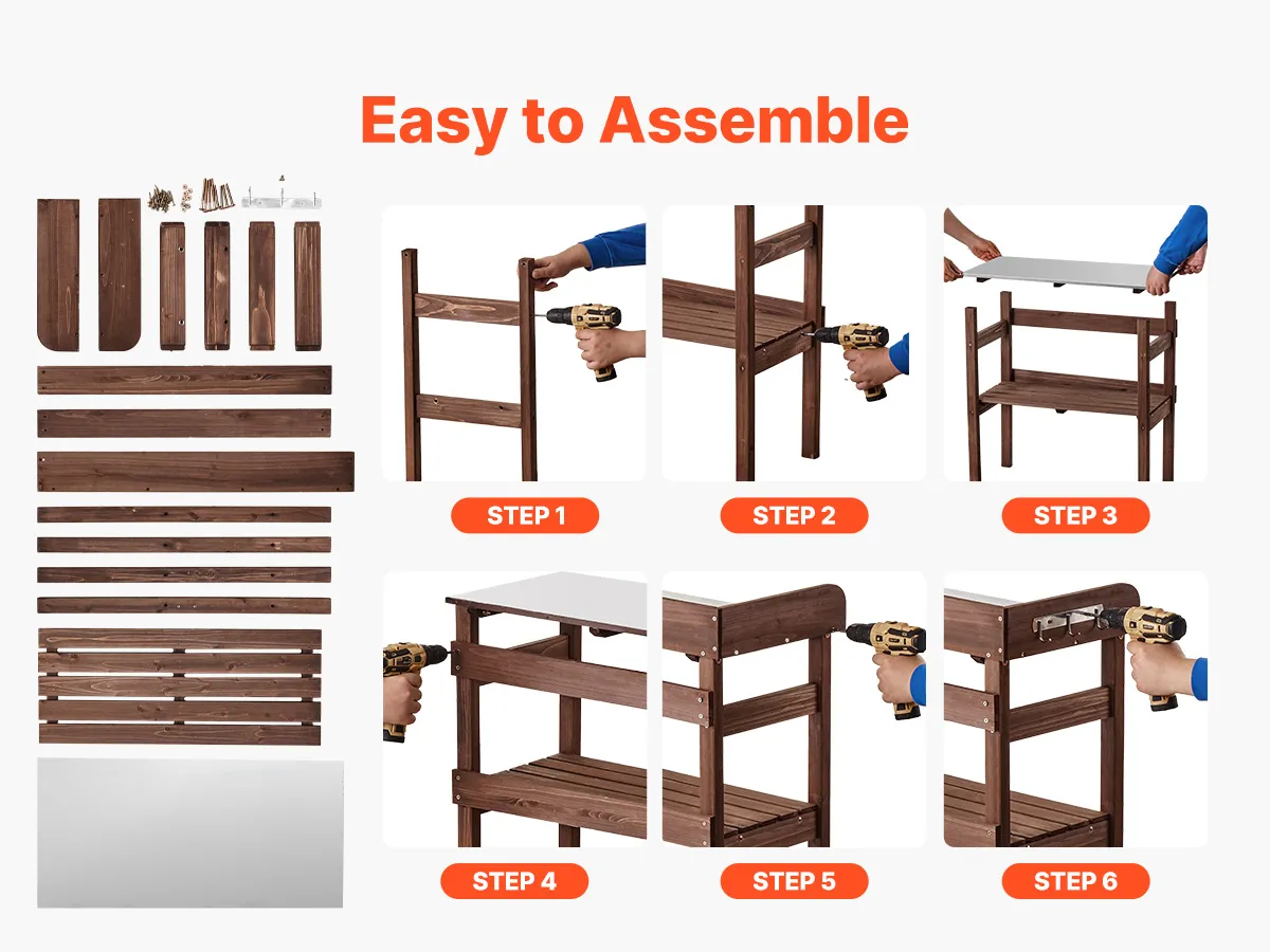 Onze oppottafel wordt geleverd met een schroevendraaier en duidelijke instructies – volg gewoon de stappen en u kunt de montage in 20-30 minuten voltooien.