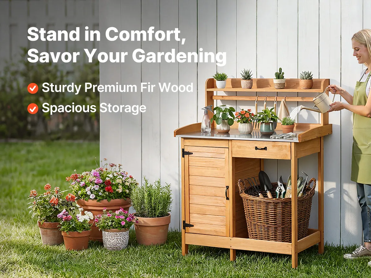 Crafted from premium fir wood, our potting bench table resists biting and rotting, delivering strong, long-term durability for your garden.