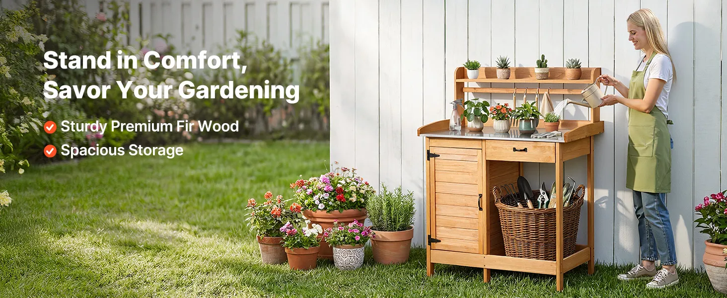 • Galvanized Metal Tabletop: Our outdoor potting bench resists water and rust, and wipes clean in seconds. Waterproof and built to last, it is ready for heavy tools and everyday garden work