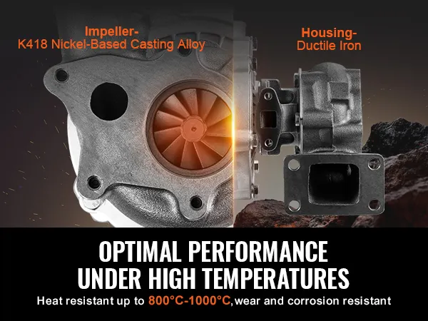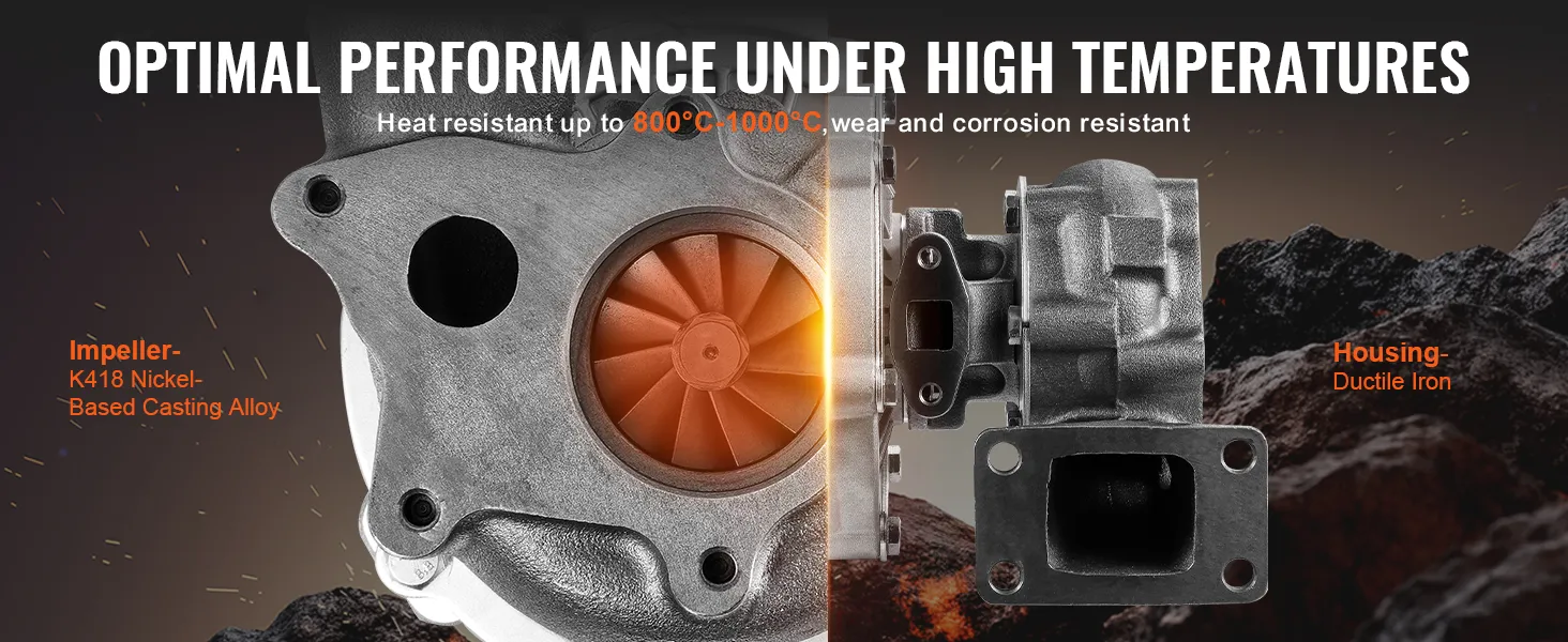 Heat Resistance Materials: The turbo turbocharger features a ductile iron housing, capable of withstanding temperatures up to 800-1000℃. This ensures reliable performance and stability even under extreme temperatures.