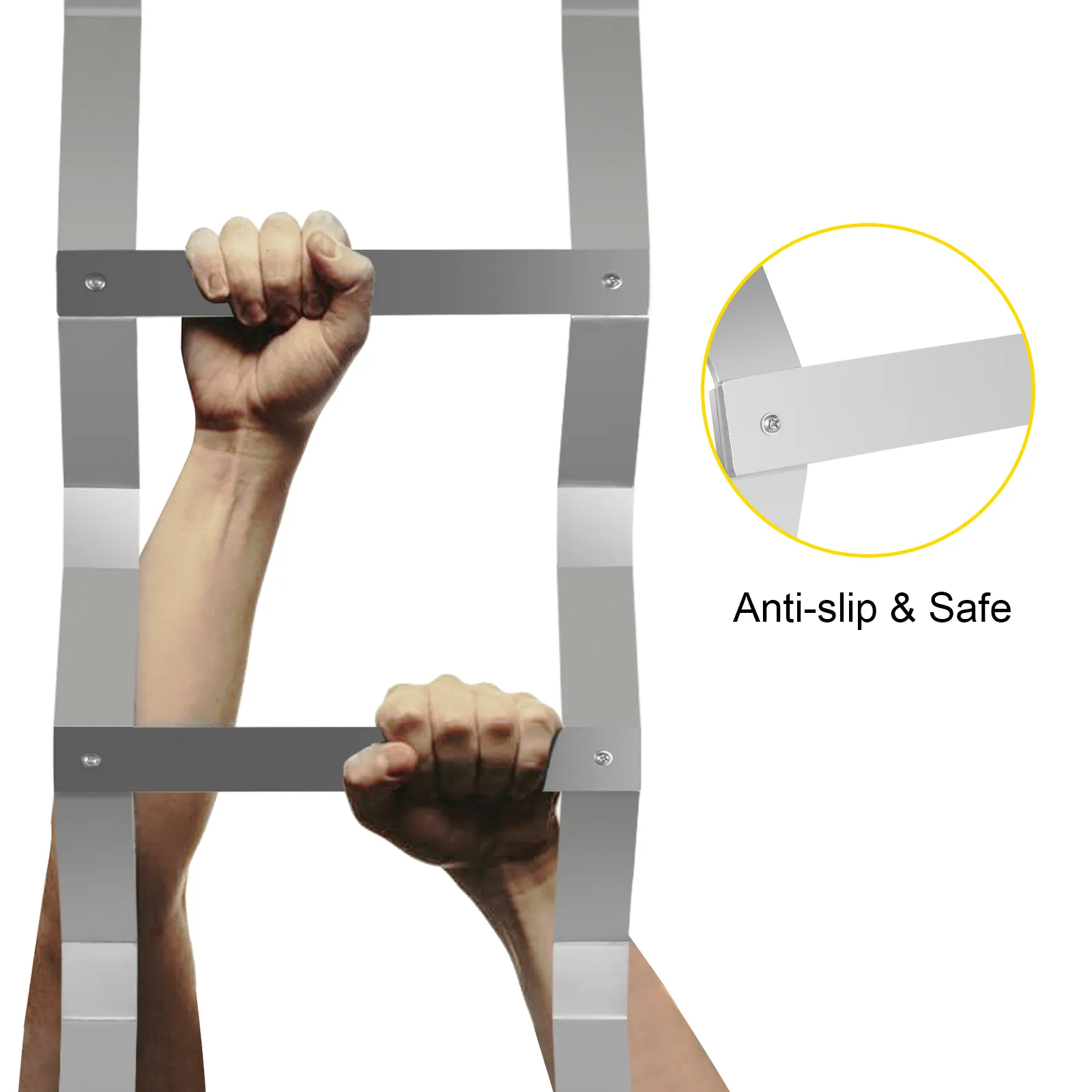 • 【DRIE-STAPPEN SKIDPROOF SPORTEN】 - Productafmetingen: 49,8 x 14,8 "(L x B); afstand tussen sporten: 12" ; De zilveren uitloopladderkelder is voorzien van antislip sporten voor extra veiligheid, waardoor in geval van nood een betrouwbare en comfortabele ontsnapping mogelijk is door het kelderraam.