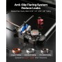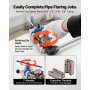 Gebruiksvriendelijk: Duidelijke markeringen op de flenskop maken het eenvoudig om de buis uit te lijnen en de juiste maat te selecteren. De meegeleverde handgreep houdt de flenskop en buis stevig op hun plaats en de precieze schroefdraad voorkomt dat de buis wegglijdt, wat zorgt voor consistente en betrouwbare flensresultaten.